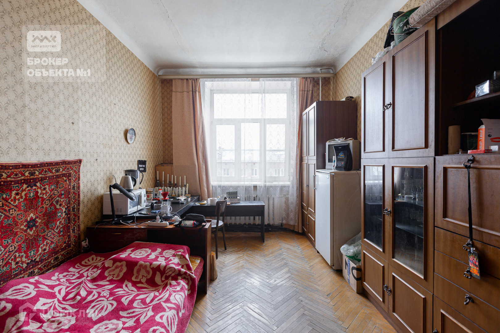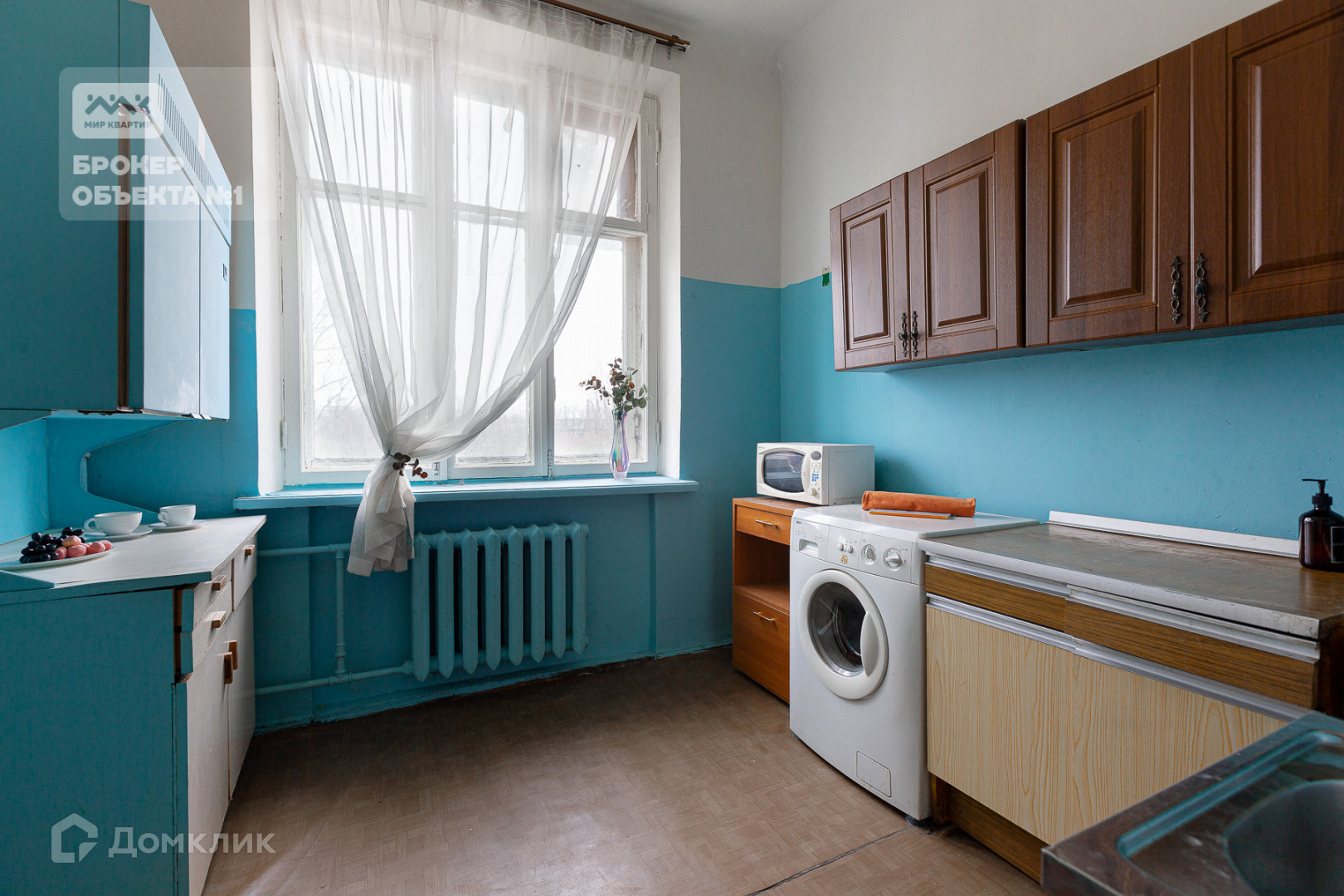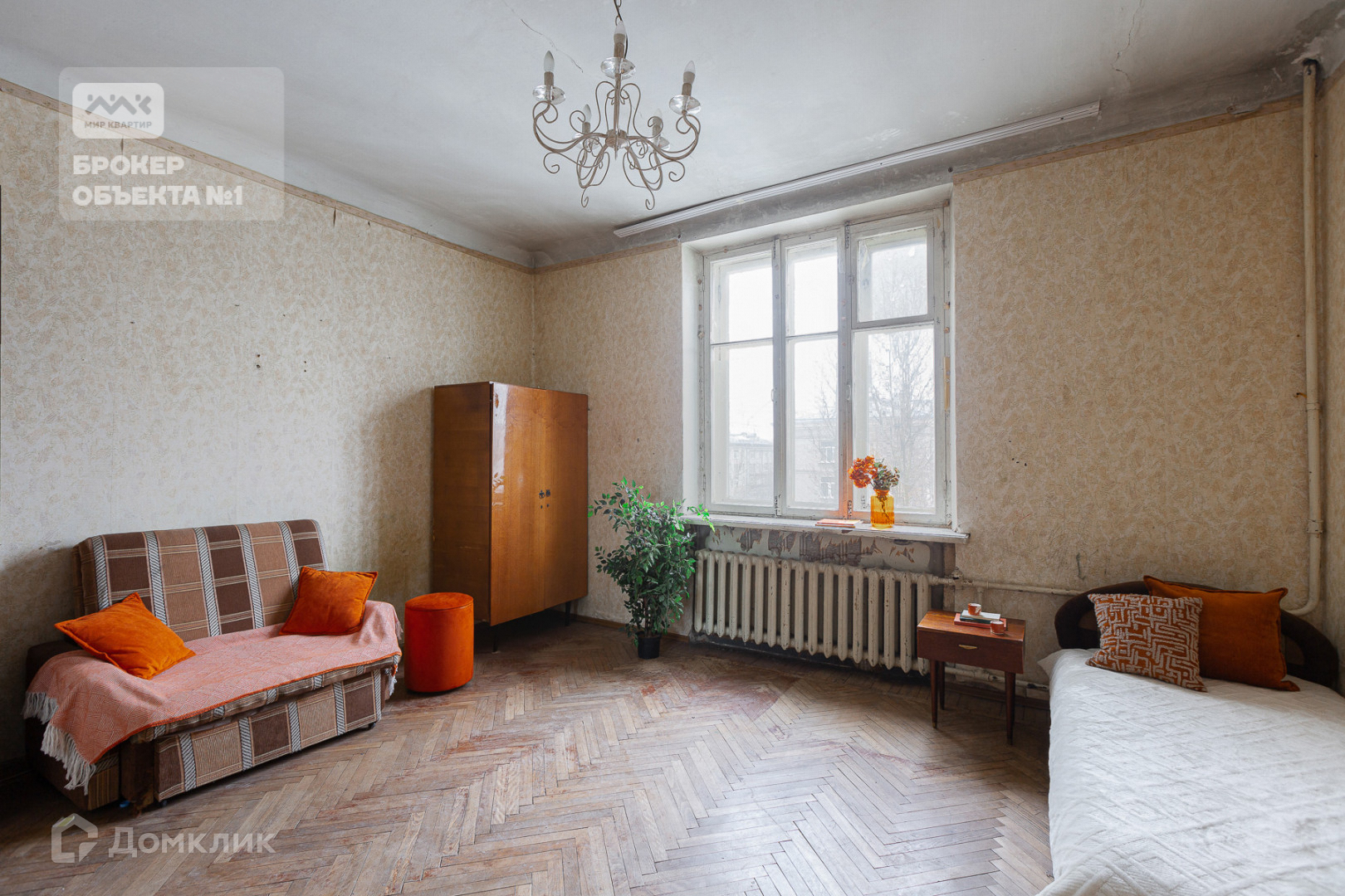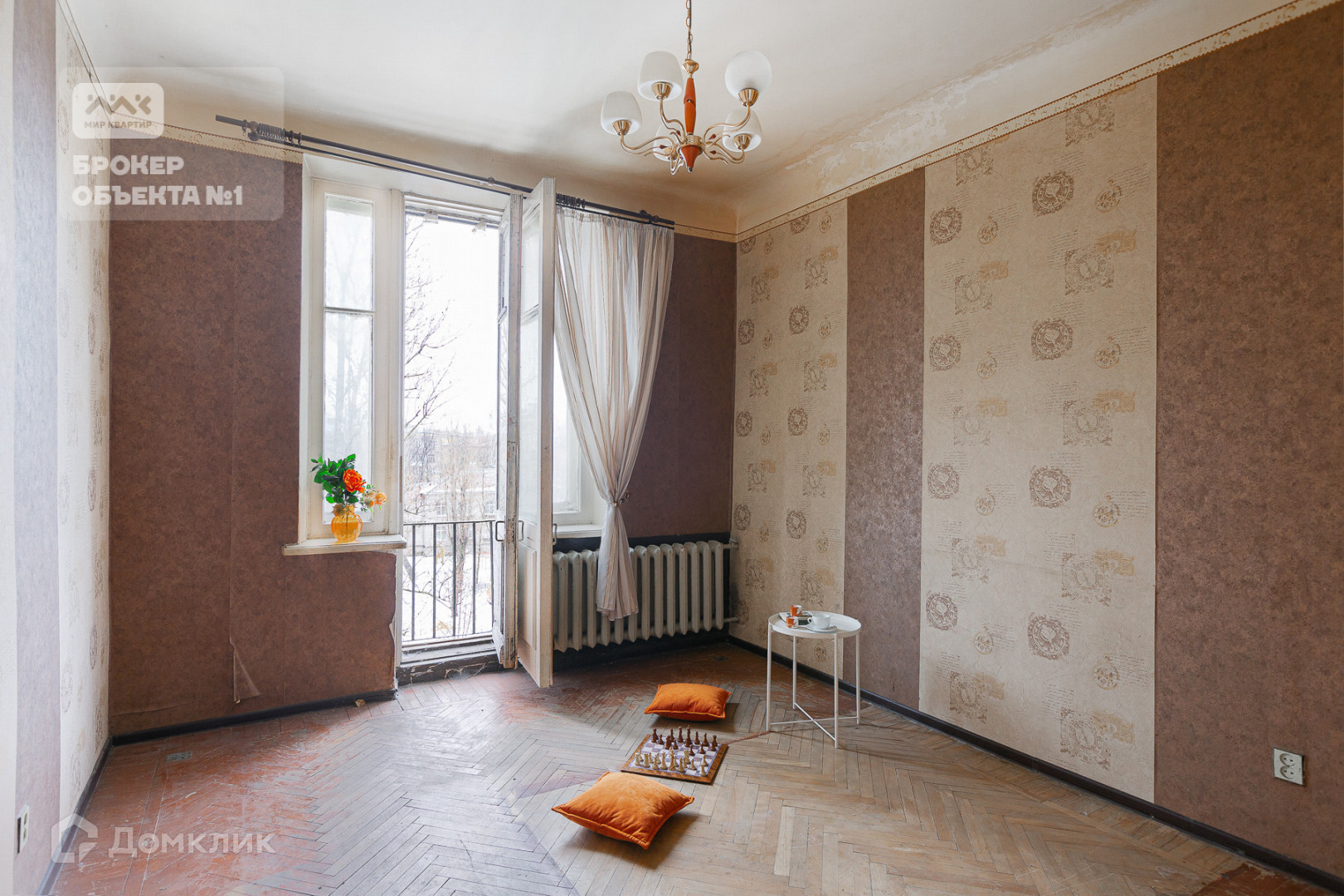 Конечно, квартира требует ремонта, но и сейчас виден потенциал этой квартиры.  Вид из окон в тихий двор с многолетними деревьями.