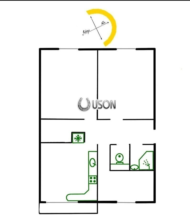 Жилая площадь 38 м2,кухня 12,  балкон - 1,  Окна в квартире выходят на 2 стороны.