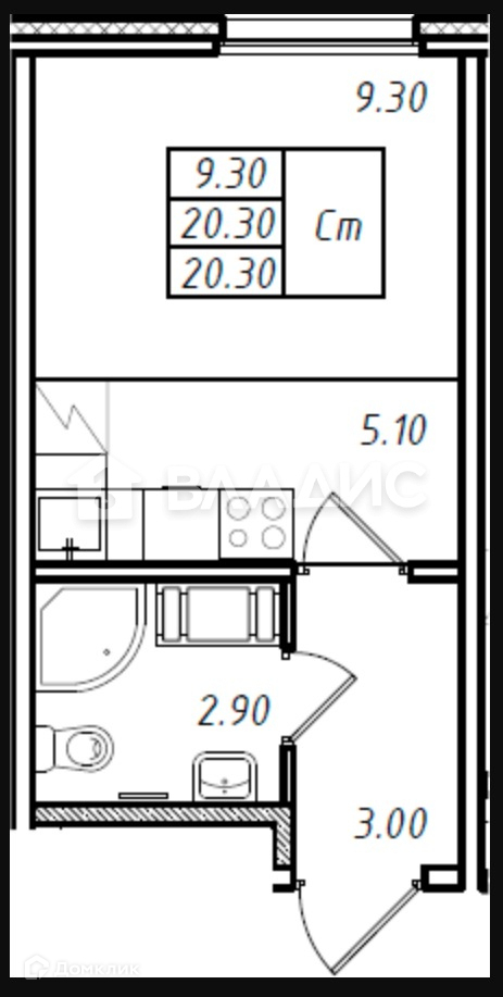 Общая площадь 20.3 м2
