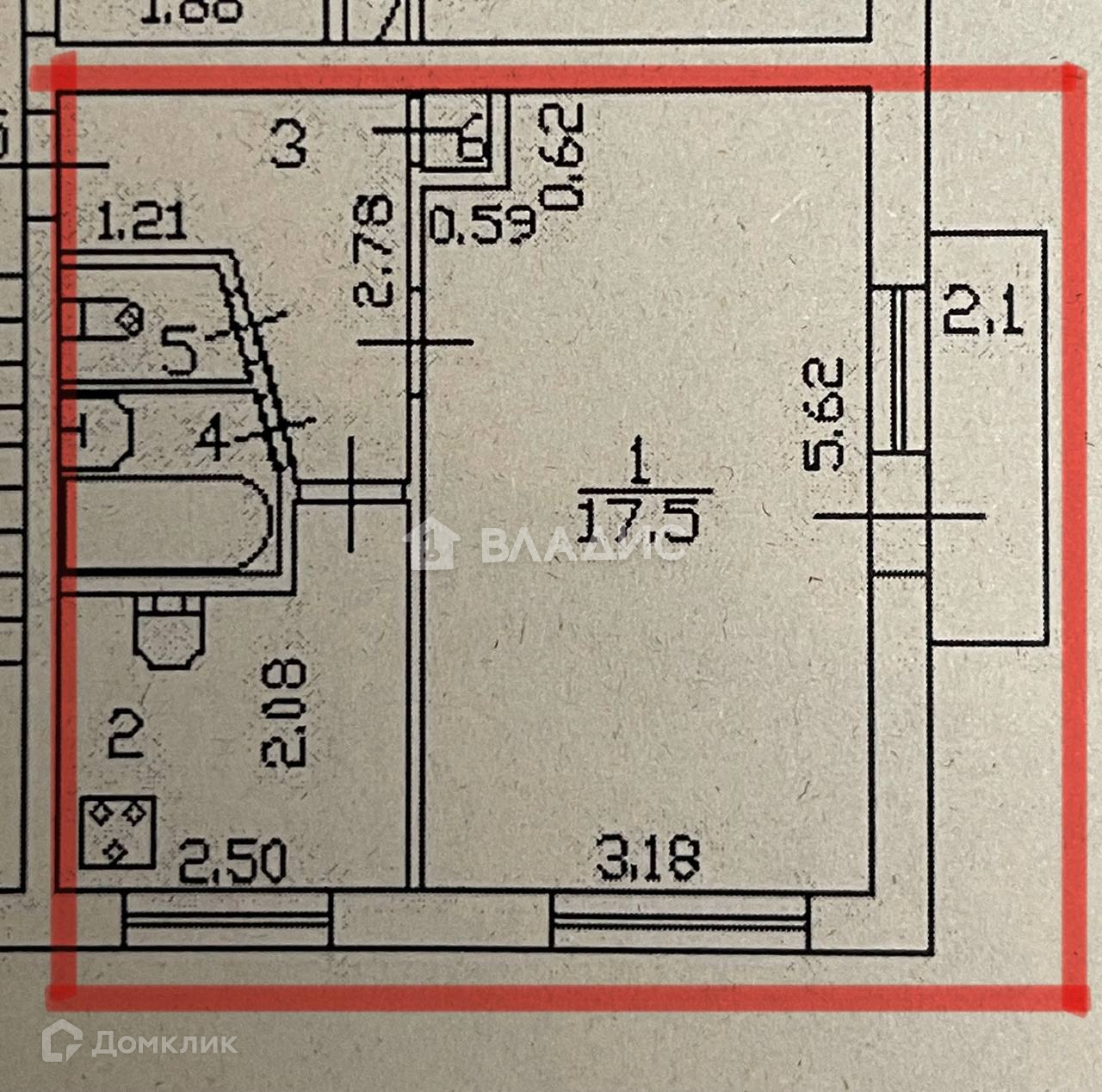 Жилая площадь 17.5 м2