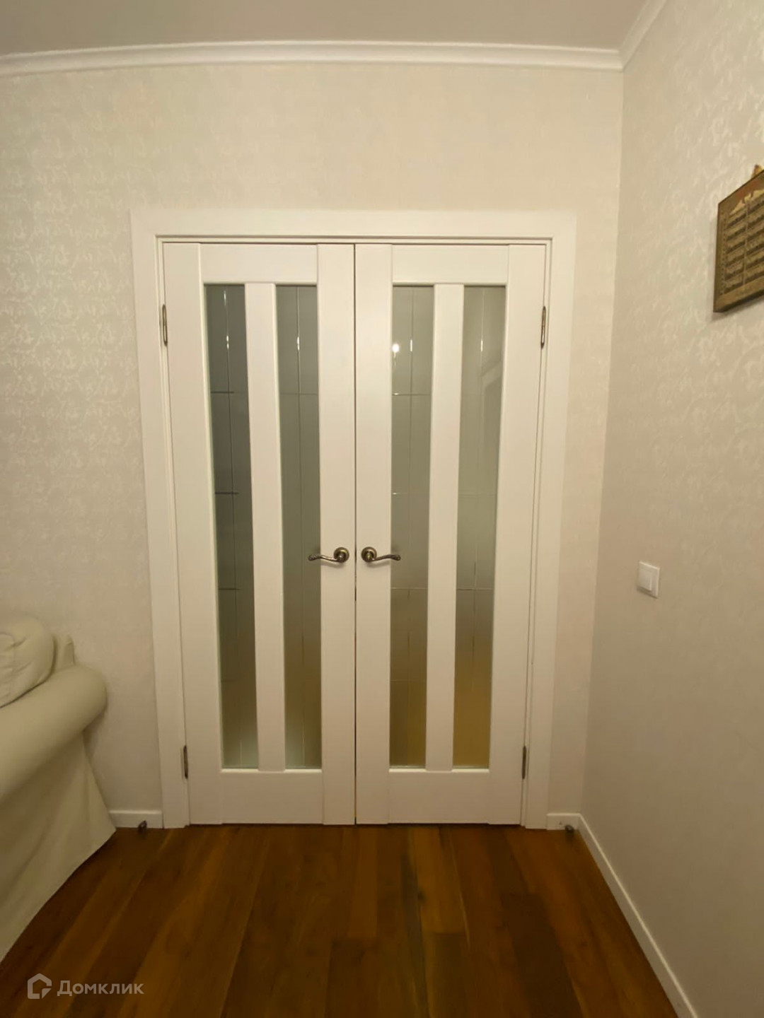 Во всю длинну коридора встроен очень вместительный шкаф. Площадь коридора максимально использована и функциональна. В детской на полу пробковое покрытие, что удобно и тепло, в остальной части квартиры - натуральный паркет, входная зона - керамогранит. Для ценных вещей - есть сейф.