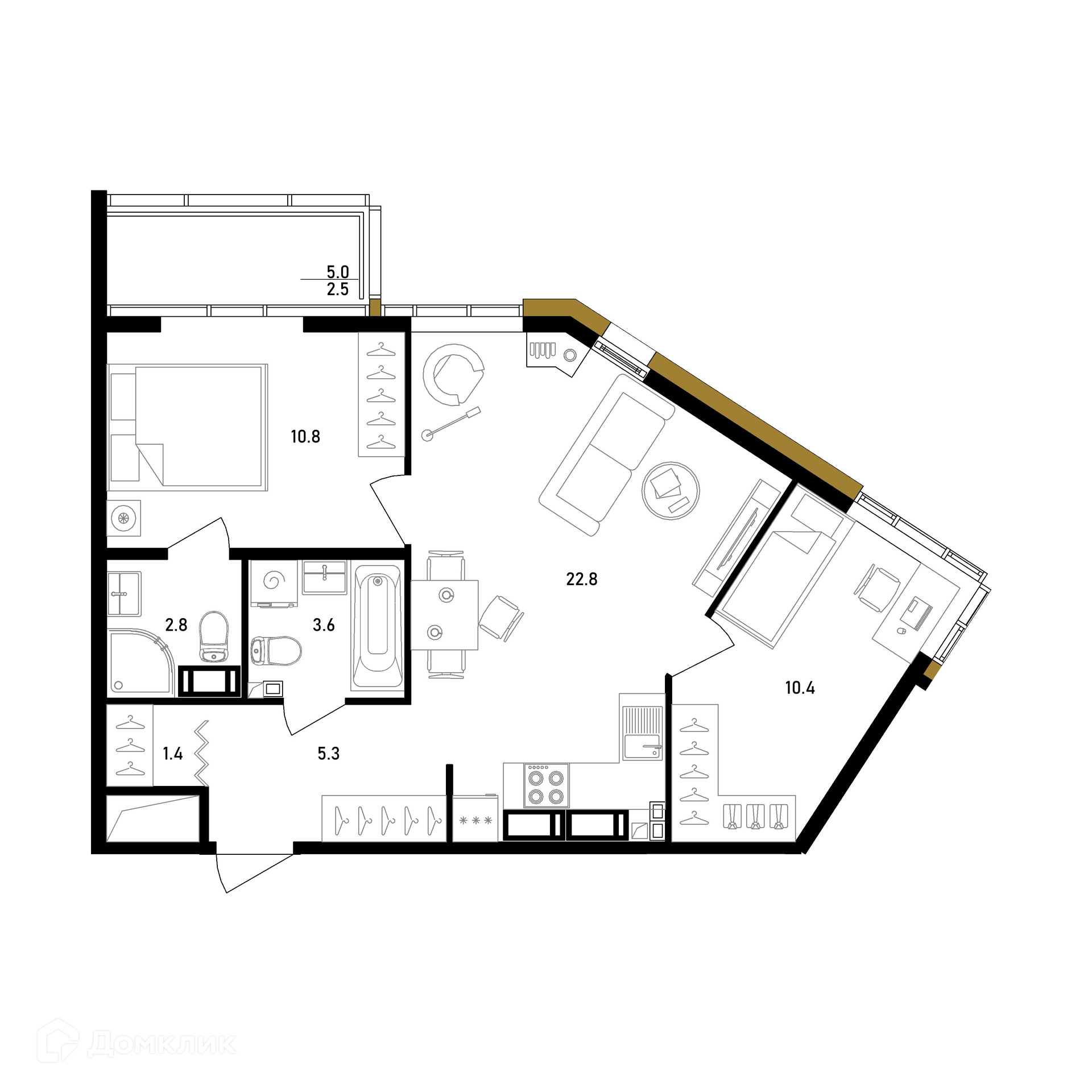 Площадь кухни 22.8 м2