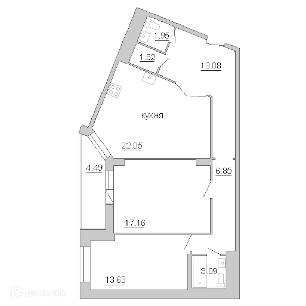 Площадь кухни 22.08 м2