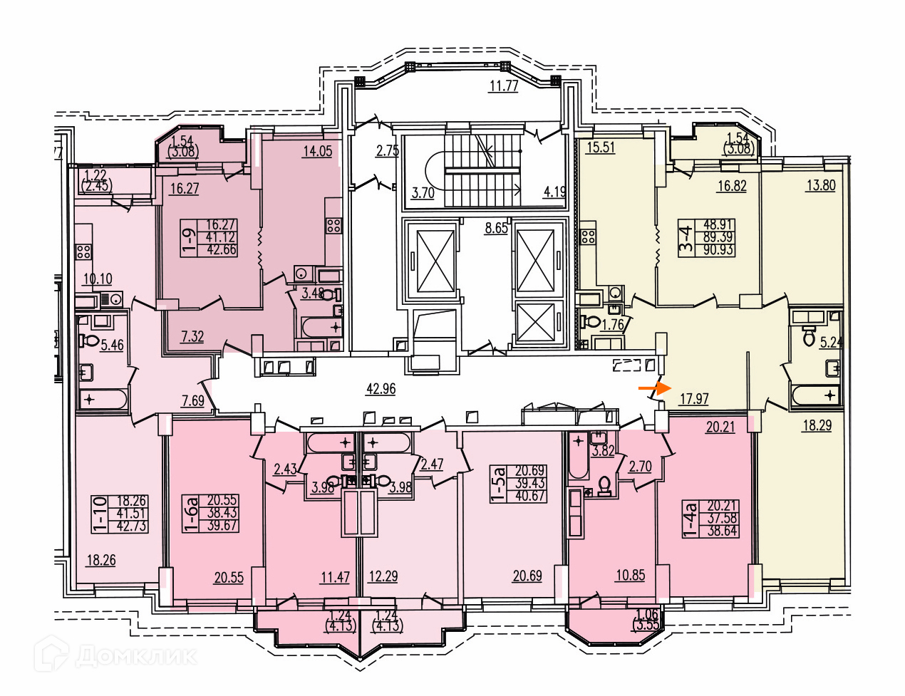 Общая площадь 91.1 м2