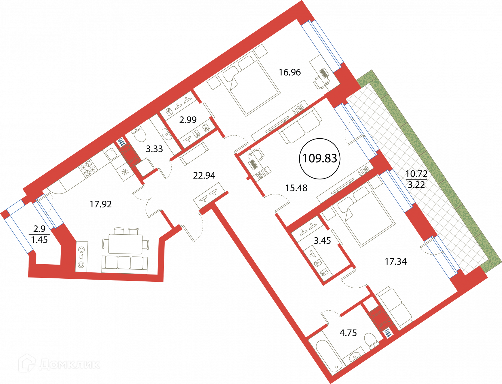 Общая площадь 109.83 м2