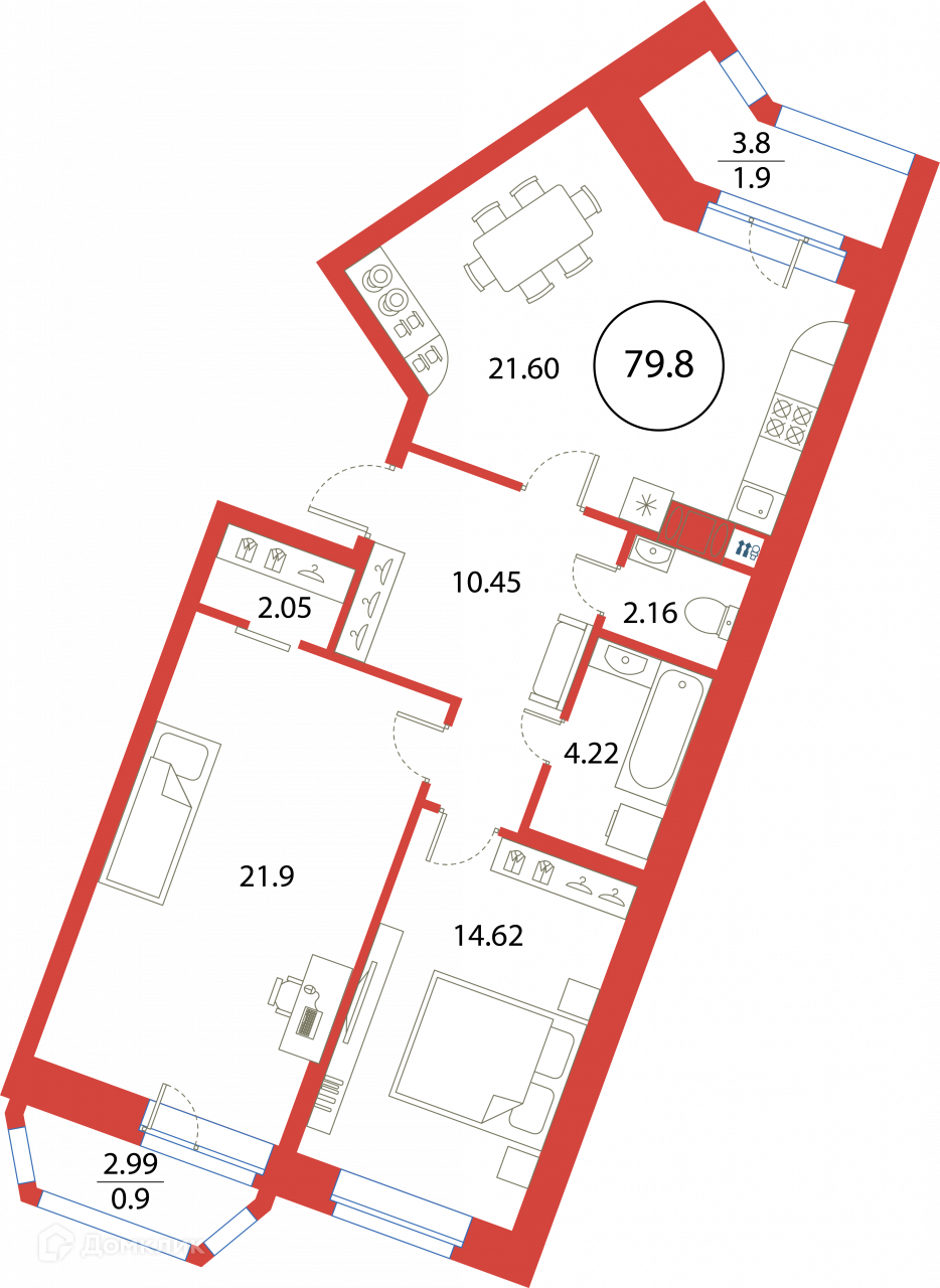 Общая площадь 79.8 м2