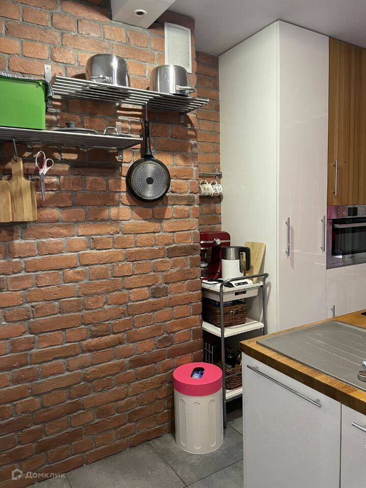 Отделка балкона-кварц винил и кирпич под покраску. На кухне рабочая зона оформлена в виде острова, который вмещает раковину, п/м машину, варочную панель и два выдвижных блока для хранения посуды. Кухонный блок вдоль стены содержит духовой шкаф с функцией свч, холодильник и места хранения. Одна из стен в кухне оформлена декоративным кирпичом. Вся кухонная техника Bosch/Siemens, сантехника Blanco.