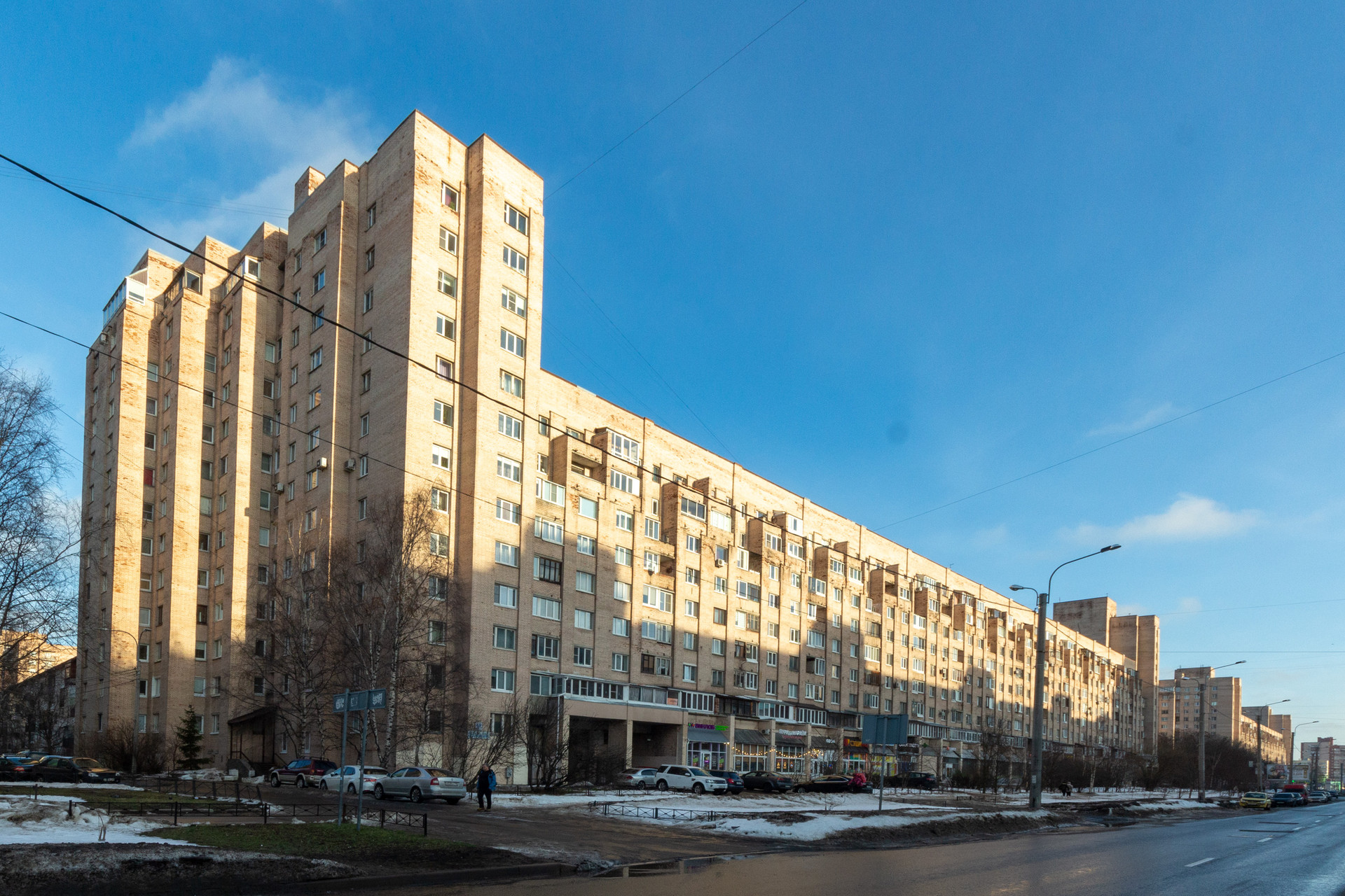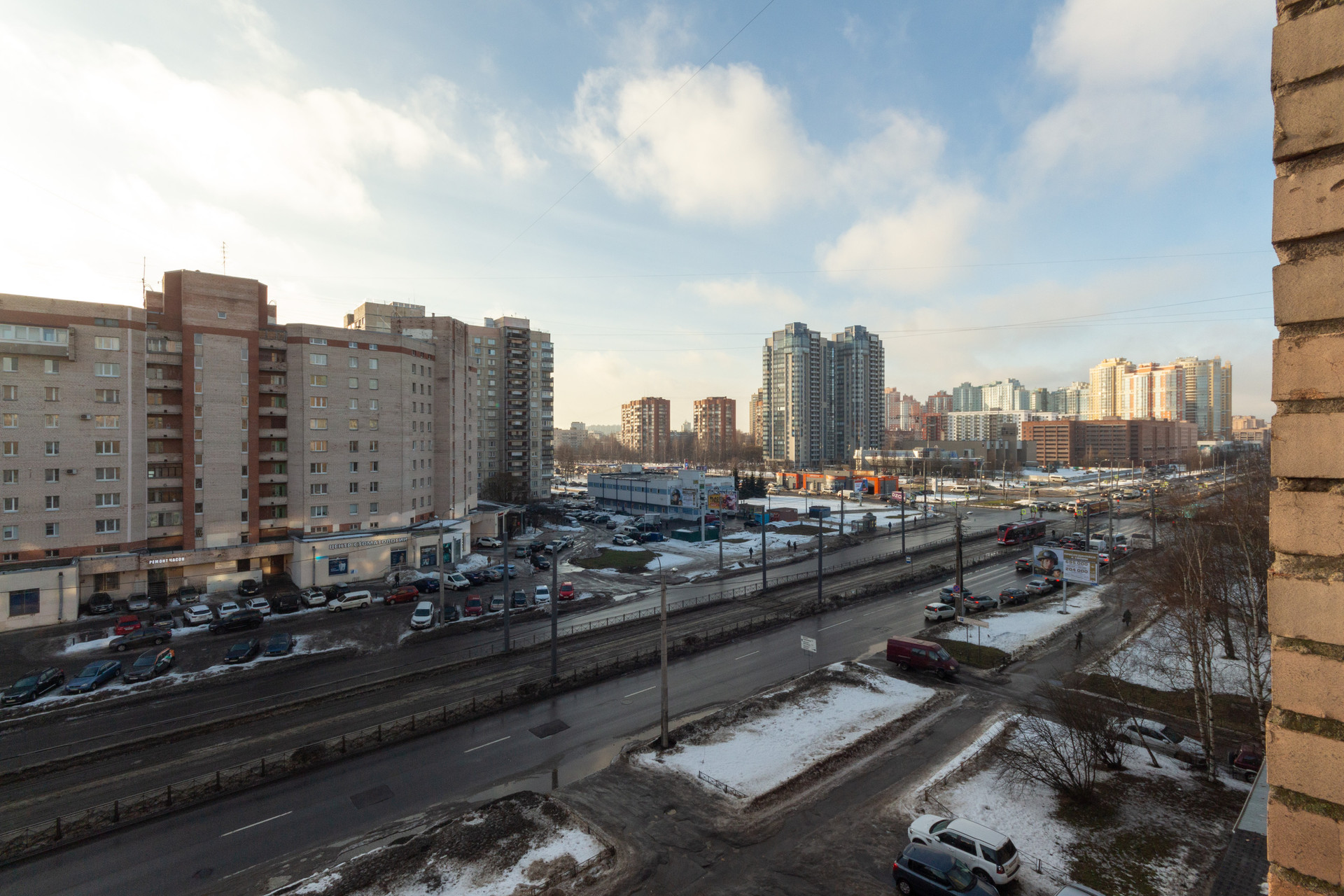 Хорошая транспортная доступность: рядом с домом несколько остановок общественного транспорта, очень удобно пользоваться скоростными трамваями до ст.м. «Гражданский проспект» и ст.м. «Проспект Просвещения» 10-15 минут, много автобусов, удобный выезд на КАД.