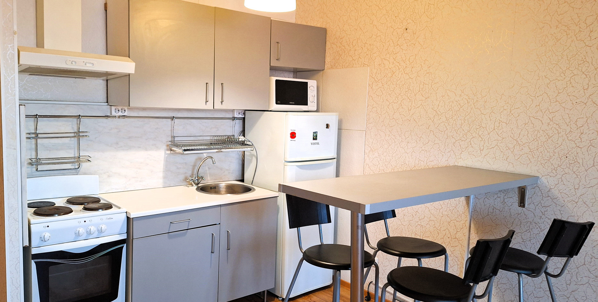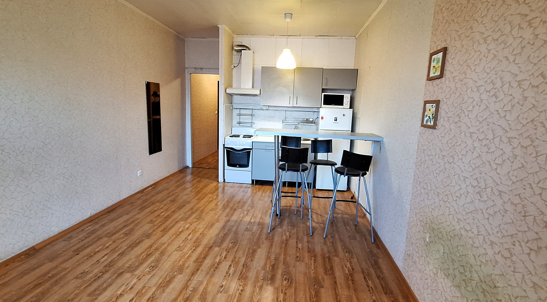 Студия комфортной планировки, просторная прихожая с системой хранения, зона кухни отделена от жилой зоны, кухонная мебель и техника входят в стоимость, вместительная застекленная лоджия (холодная).