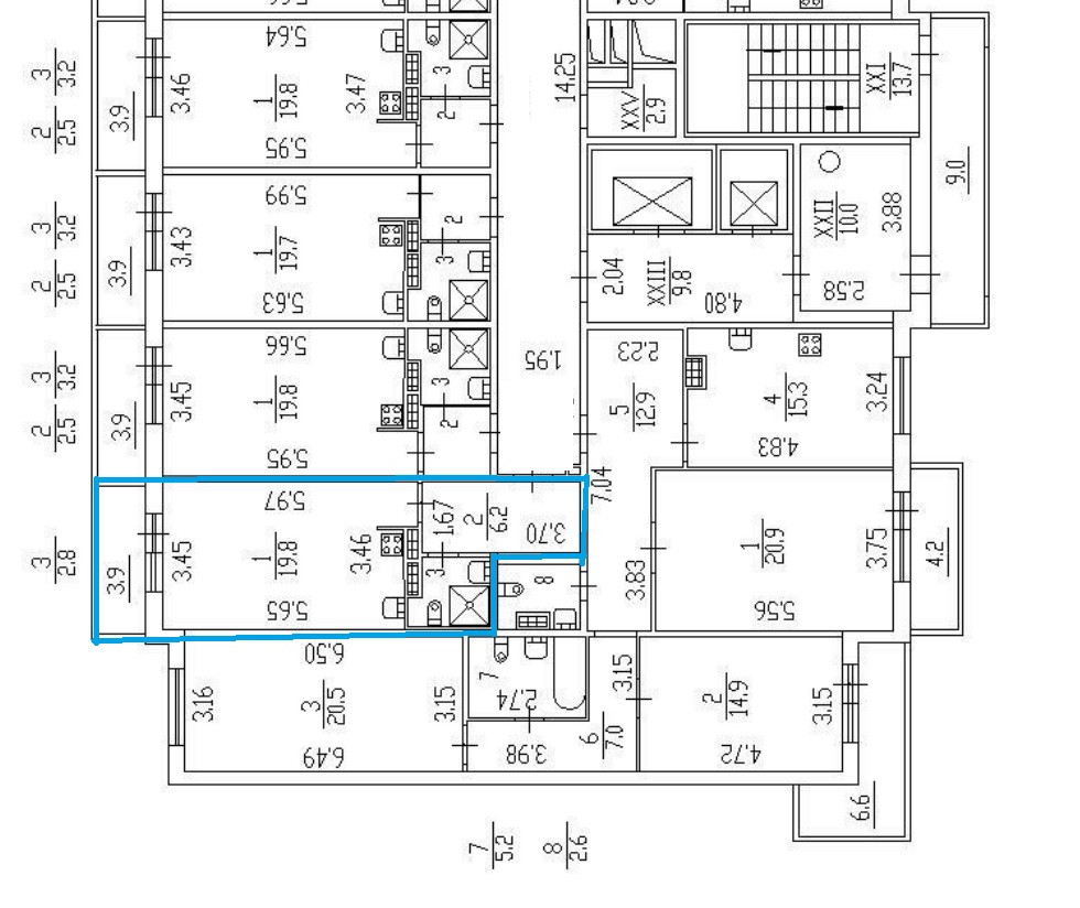 Жилая площадь 19.8 м2