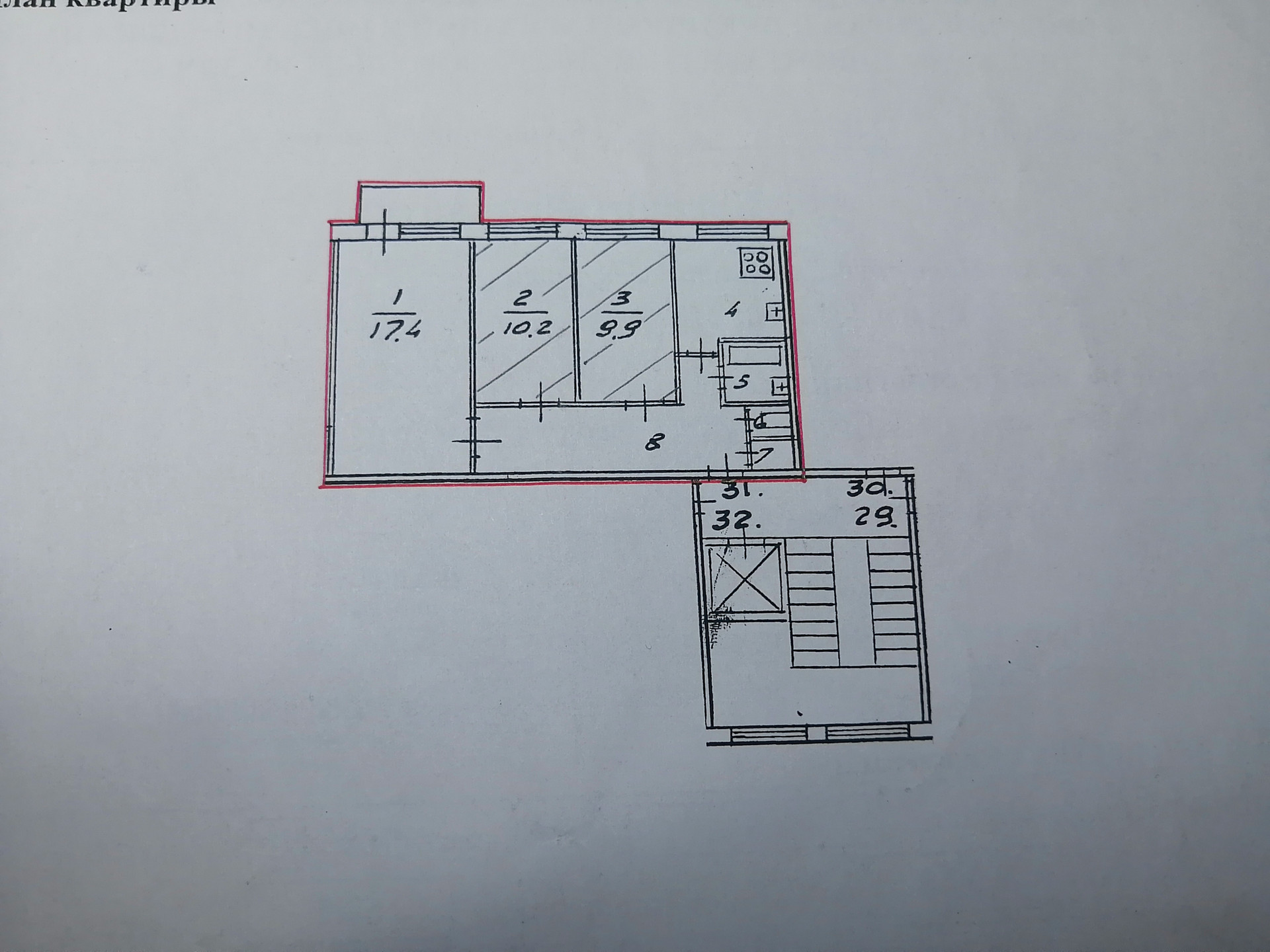 Все комнаты раздельные 10 кв.м.+10 кв.м.+18 кв.м. с балконом, кухня – 7 кв.м., есть  кладовка, плита газовая. Общая пл. 59 метров.