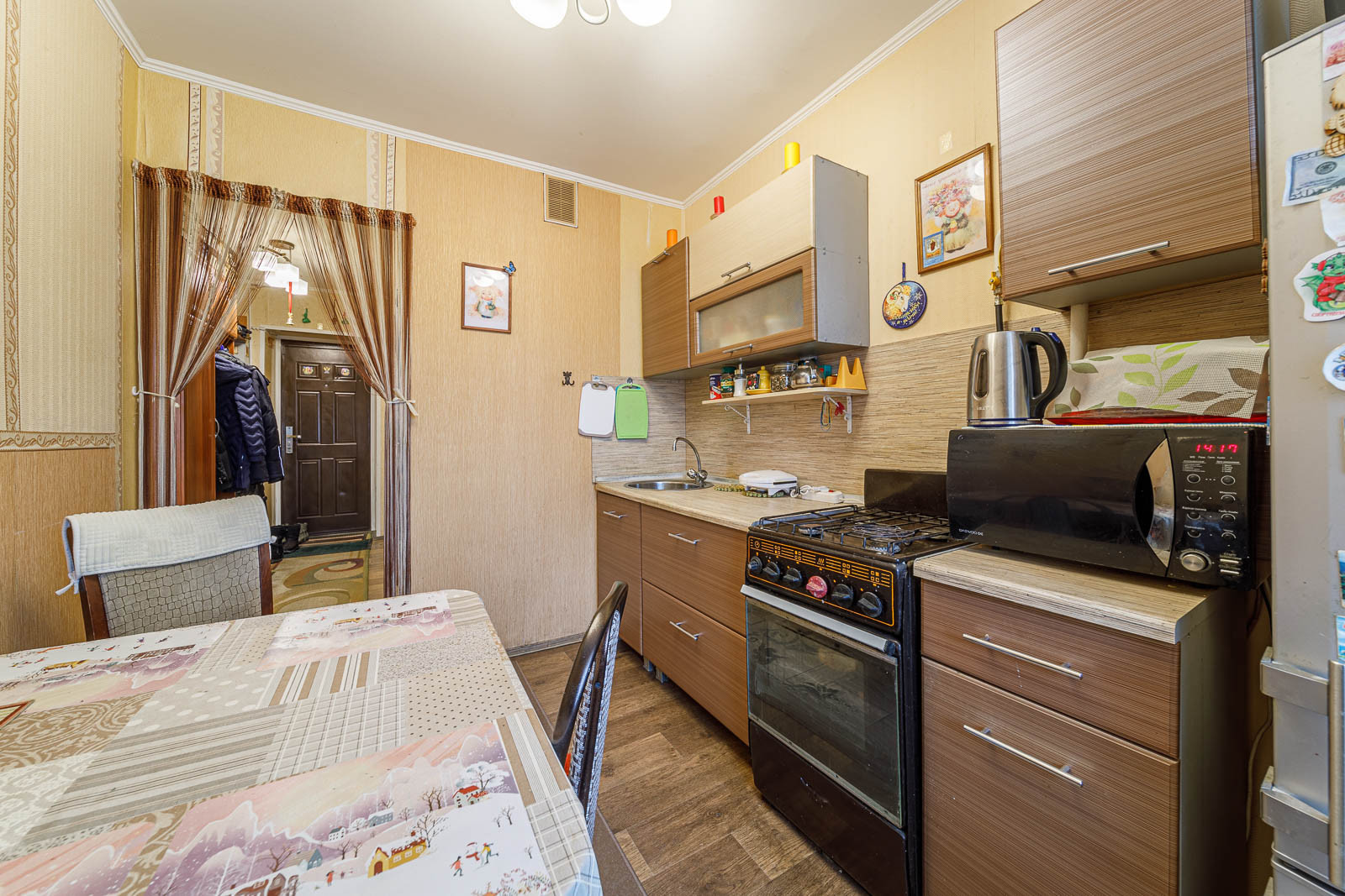 1972 гп. 4/14эт. Общ пл-36м(площадь по ЕГРН)+ к площади -6.7м-большая застекленная лоджия на кухню и комнату . Кухня-7.7м( квадратная), комната-20.3(м), разд с/у-2.3+1.2(м), коридор-4.1(м). Не высокие коммунальные платежи. Тихие дружелюбные соседи.