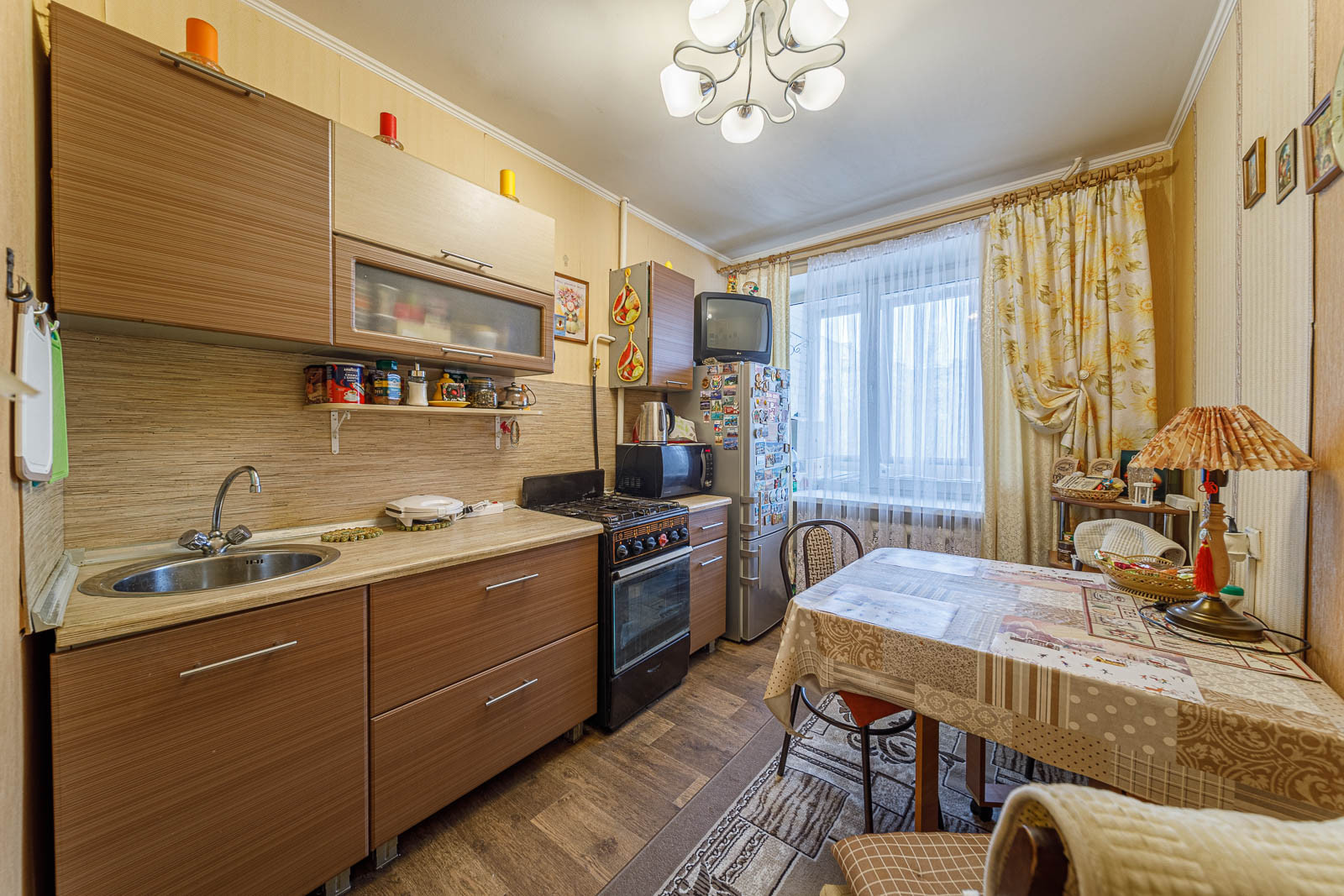 Состояние: квартира ухоженная и чистая -въезжай и живи. Поменяны коммуникации , установлены новые счетчики ХВ и ГВ. СТ/П. В комнате пол -паркет, коридор и кухня-линолеум, с/узел -плитка. По желанию остается кухонный гарнитур и мебель в комнате.