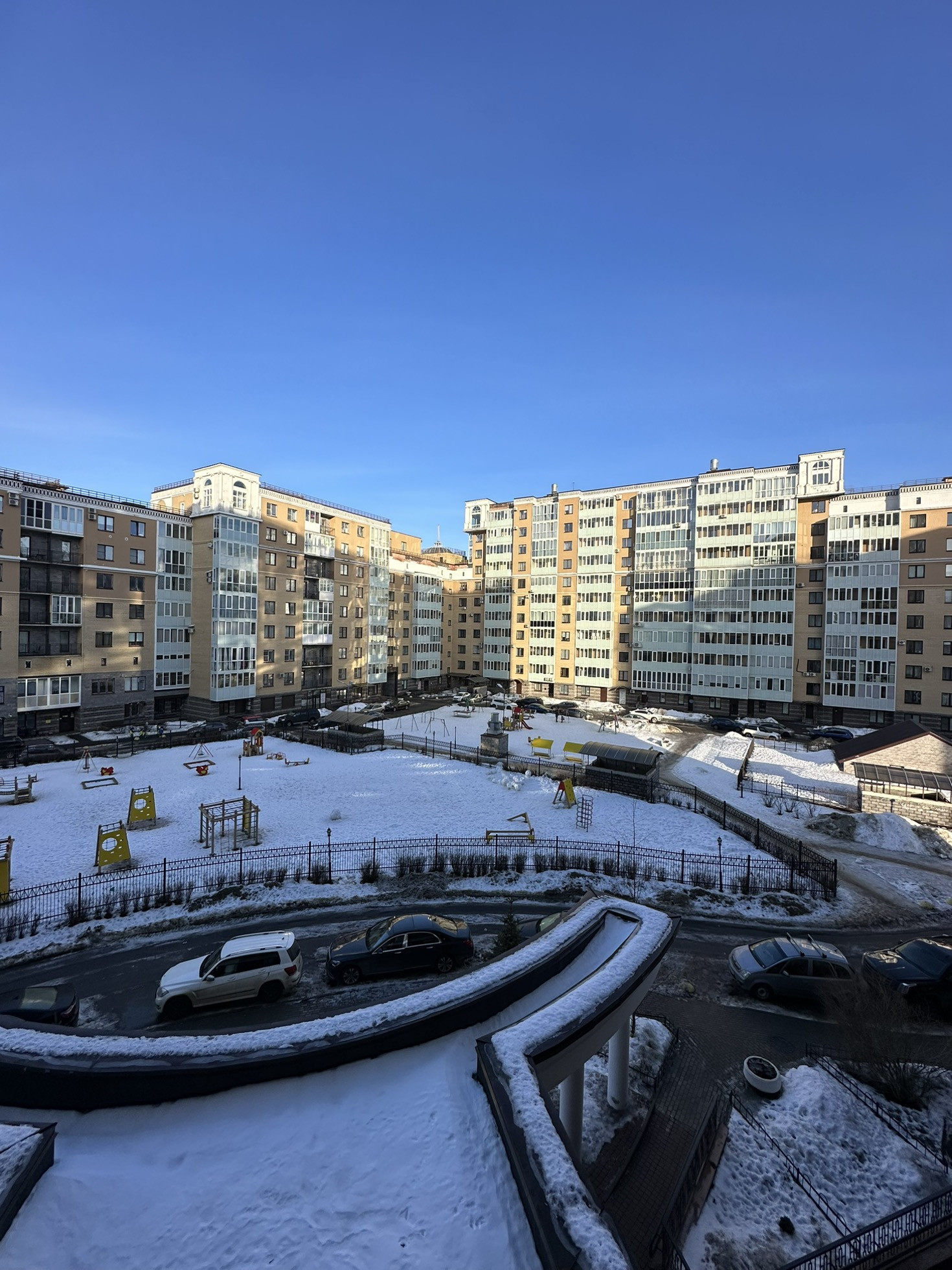 Внутренние дворы благоустроены, установлены детские площадки.
