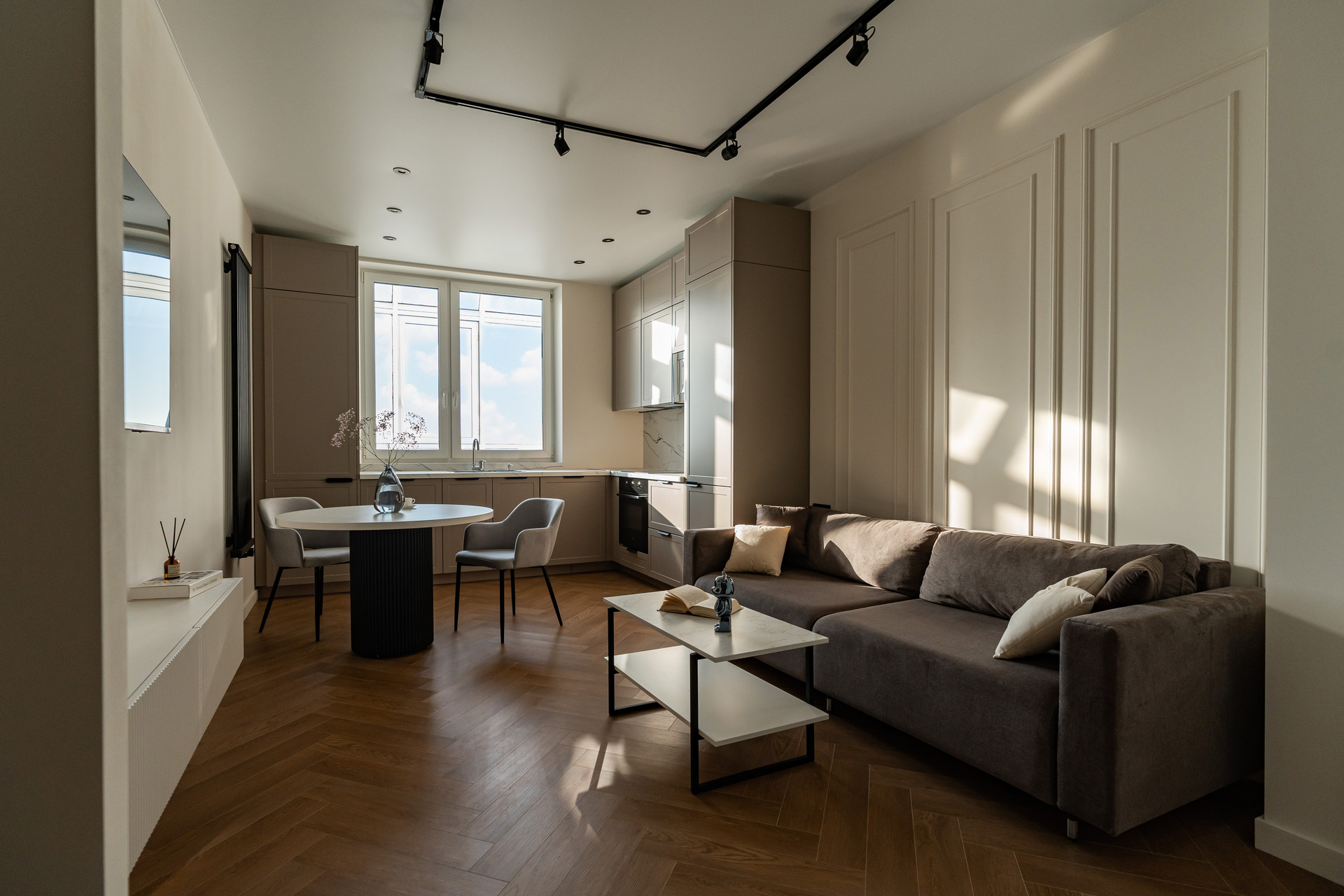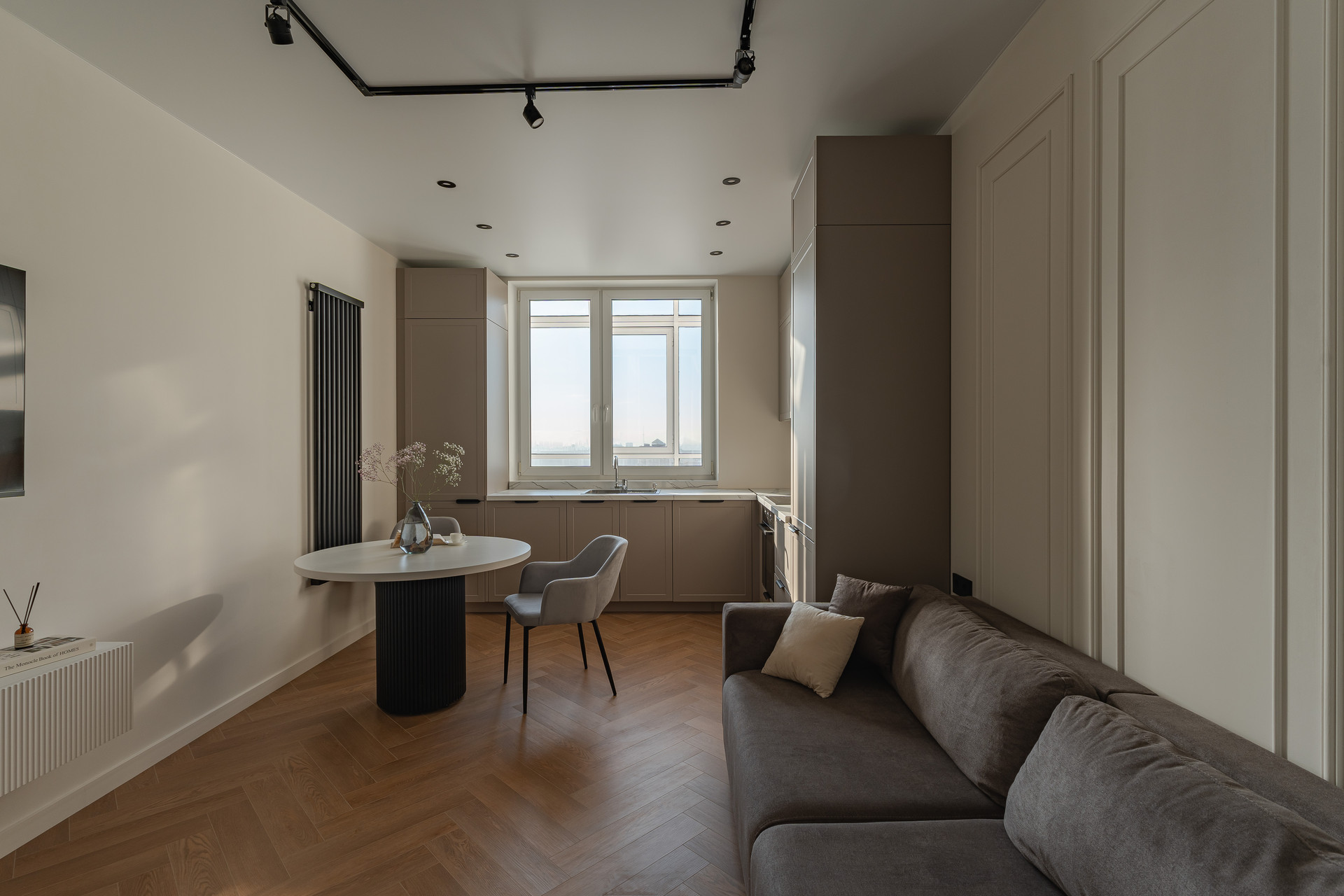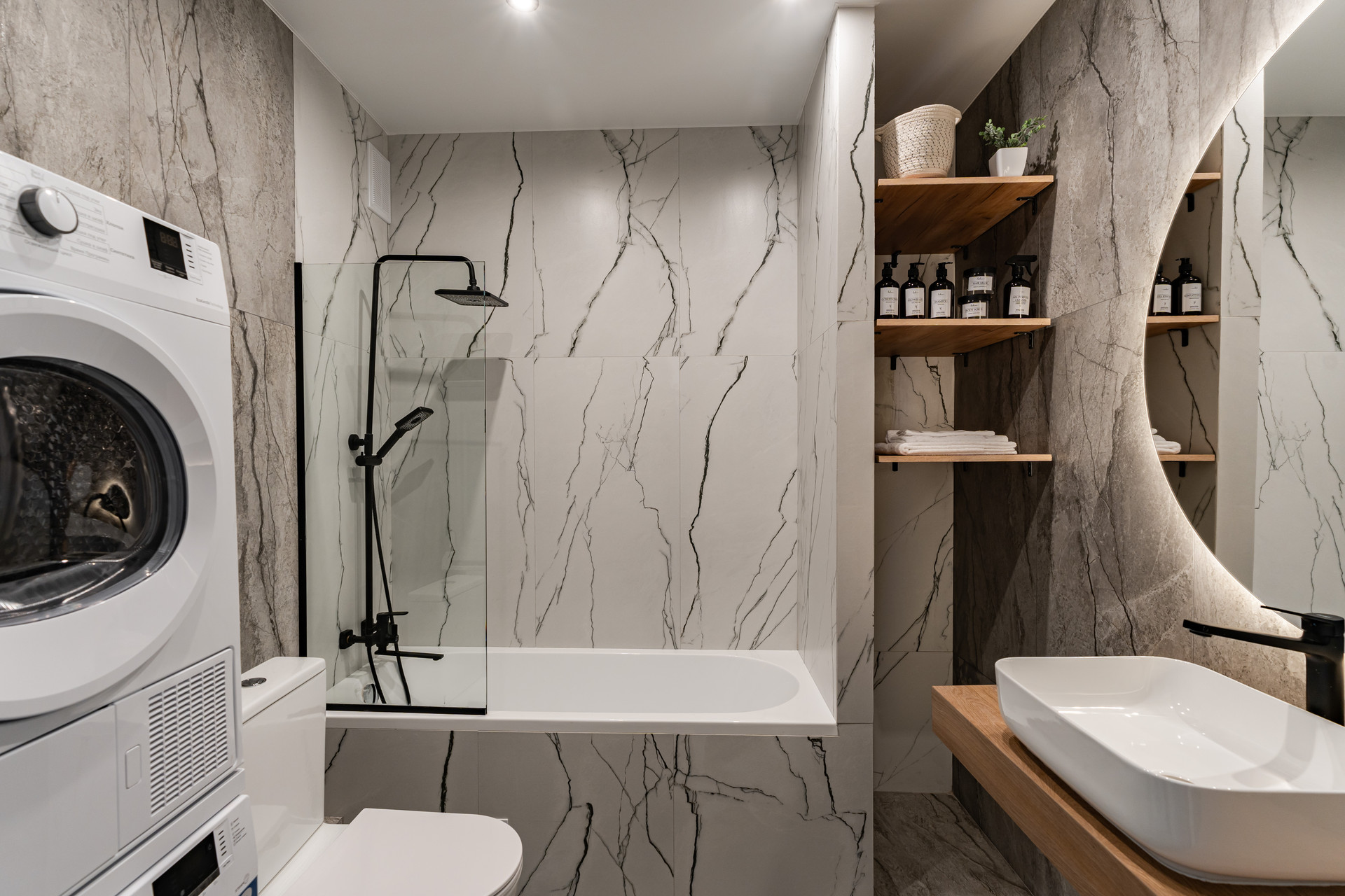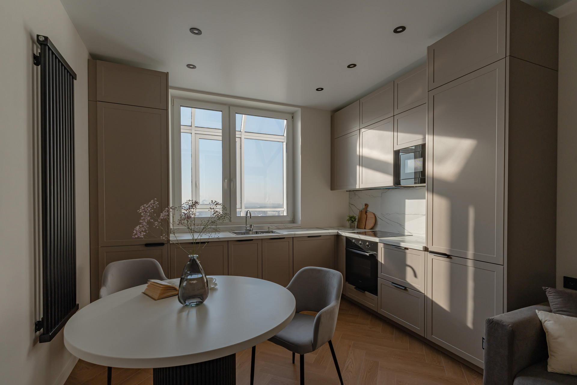 Есть абсолютно все для жизни, холодильник, варочная панель, духовой шкаф, посудомоечная машина, вытяжка, стиральная и сушильная машина, два больших смарт ТV - 55 дюймов с Яндекс Алисой.