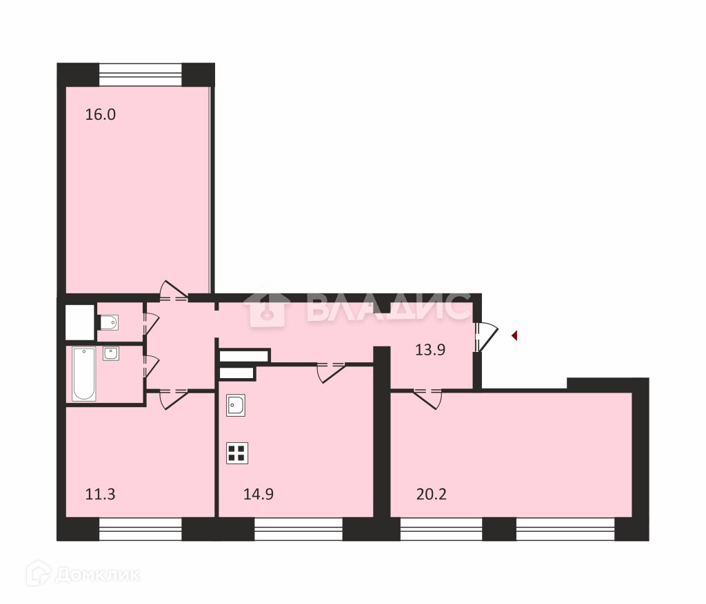 С тремя изолированными комнатами-20,2+16+11,3 м.кв, просторной прихожей, раздельный санузел.