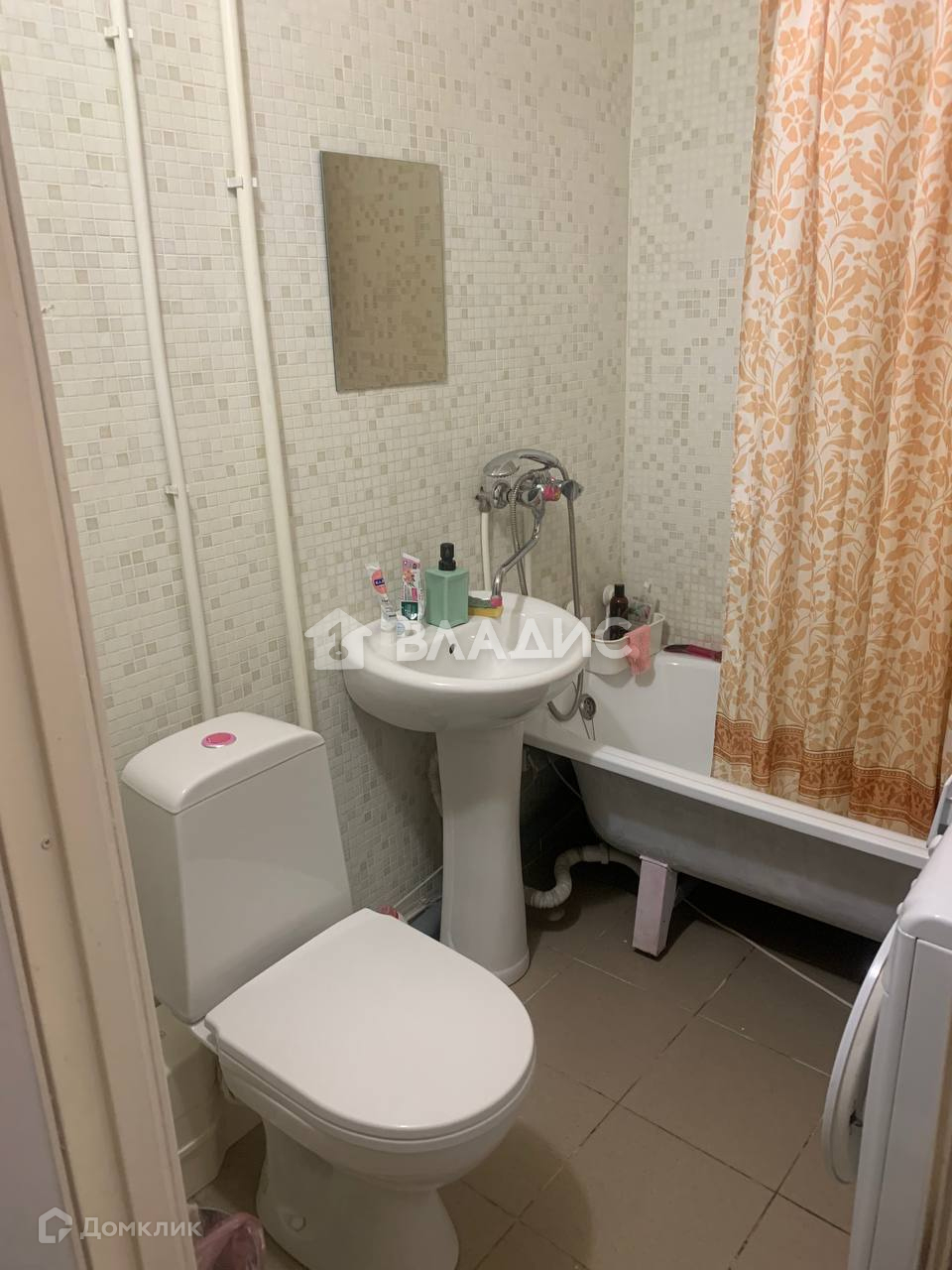 Совмещенный санузел оснащен сантехникой, стены оклеены обоями.