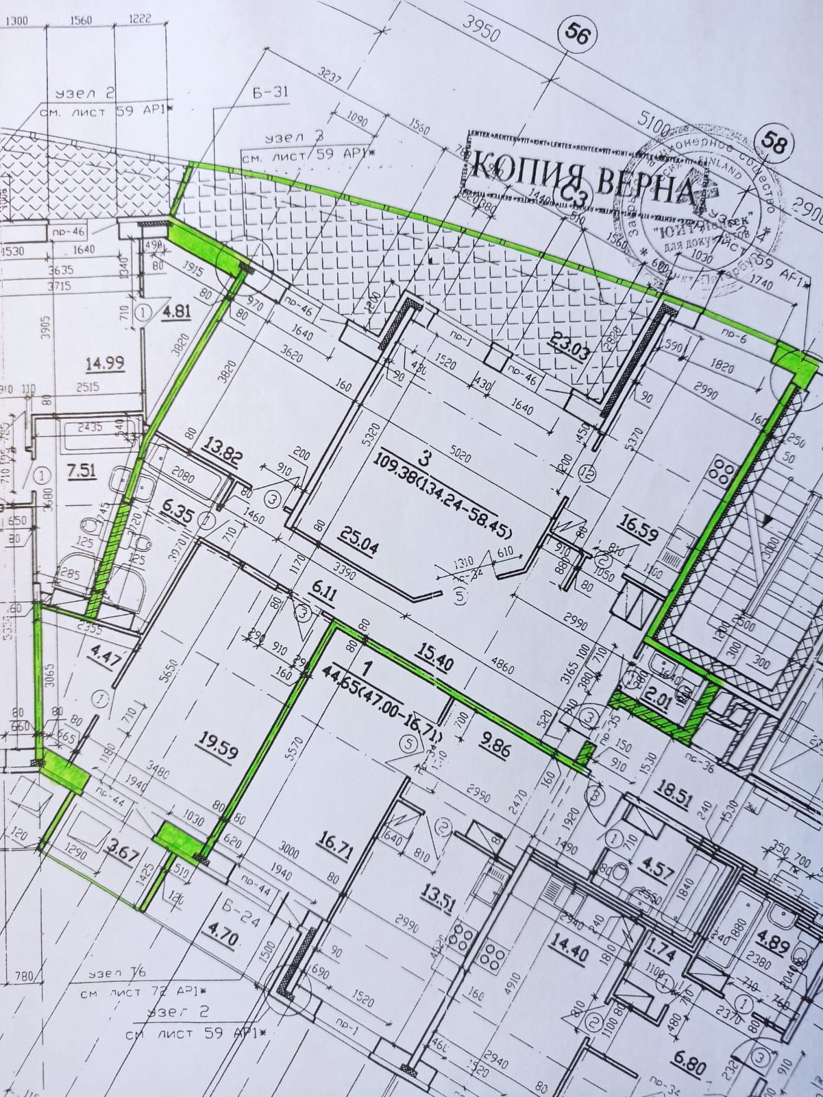 Жилая площадь 58.5 м2