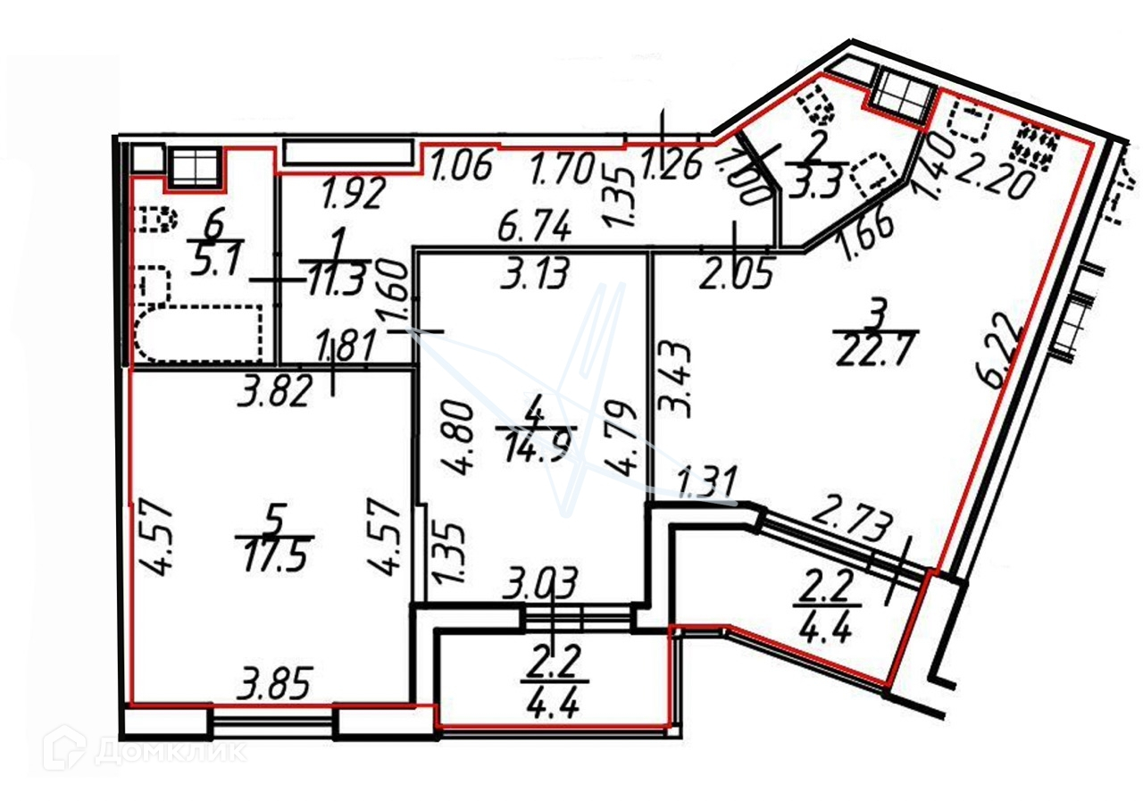 Квартира имеет общую площадь 74,8 квадратных метров, отличную планировку и состоит из двух комнат 14.9 м2 и 17.5 м2, просторной кухни-гостиной 22.7 м2, двух санузлов, двух лоджий. В квартире выполнен качественный ремонт, установлены новые окна и двери.