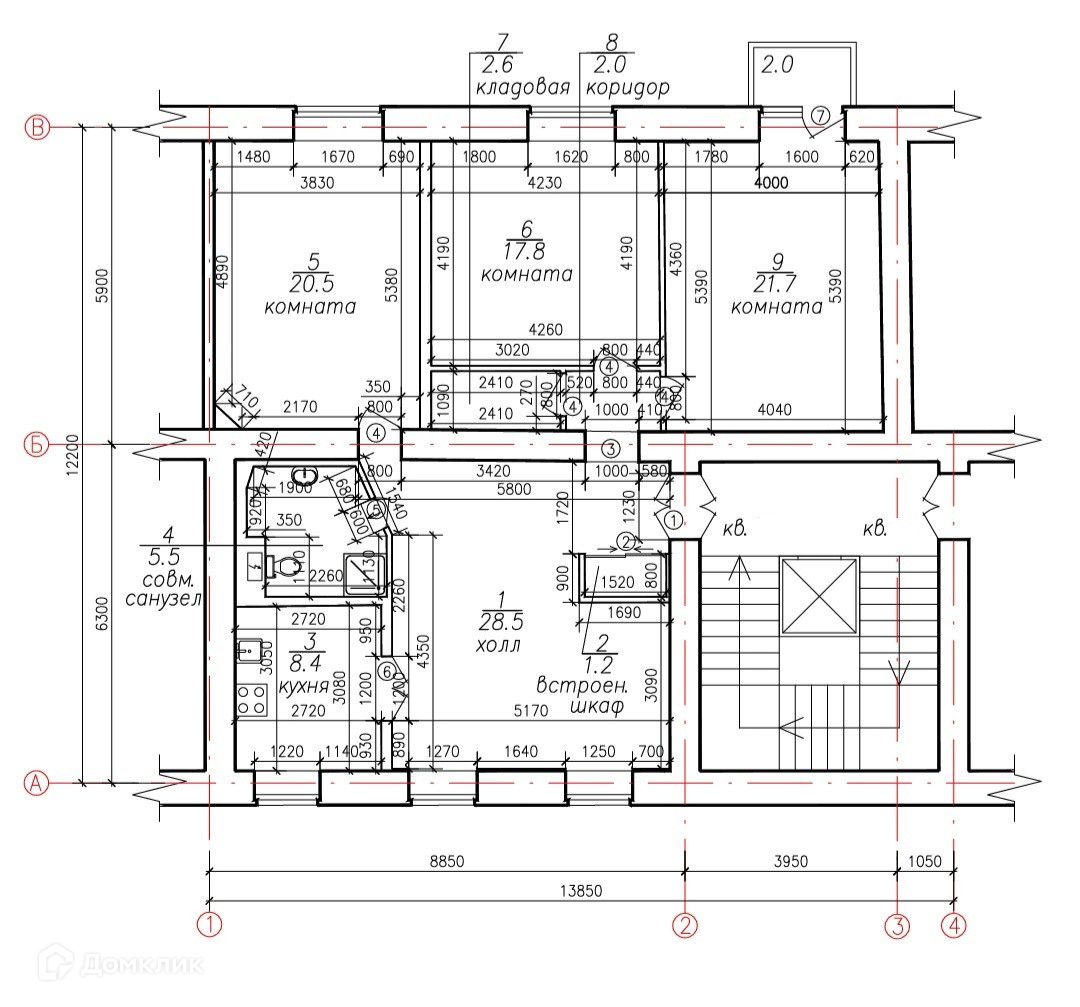 Жилая площадь 84.1 м2