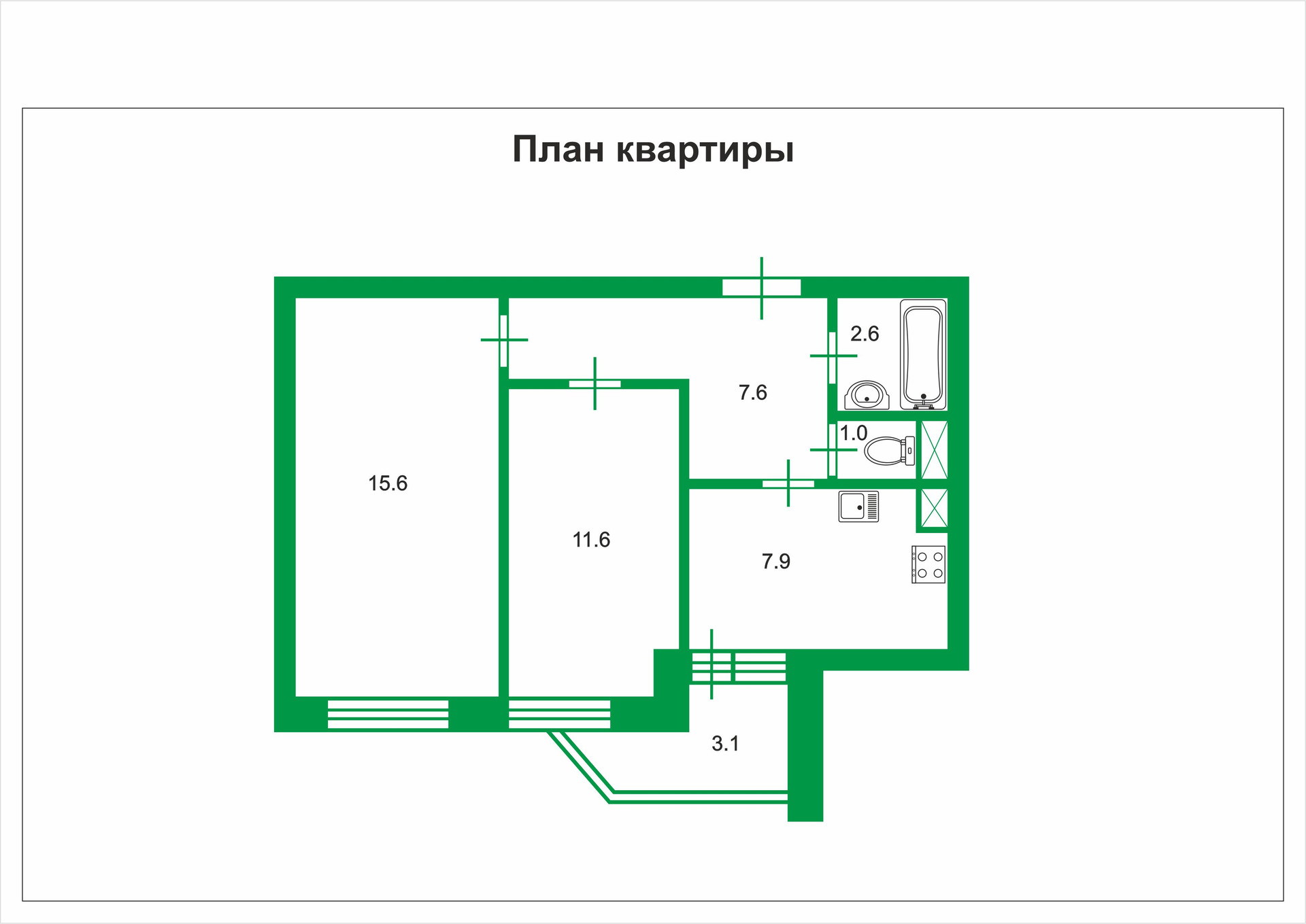 Общая площадь 46.3 м2