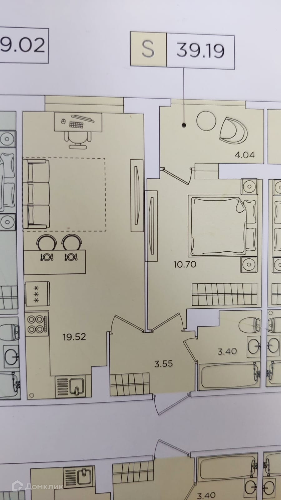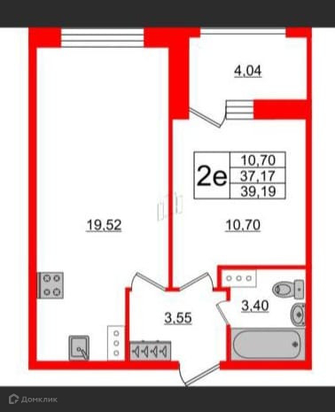 Общая площадь 39.19 м2