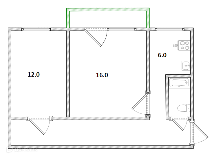 Балкон, лоджия 1 балкон