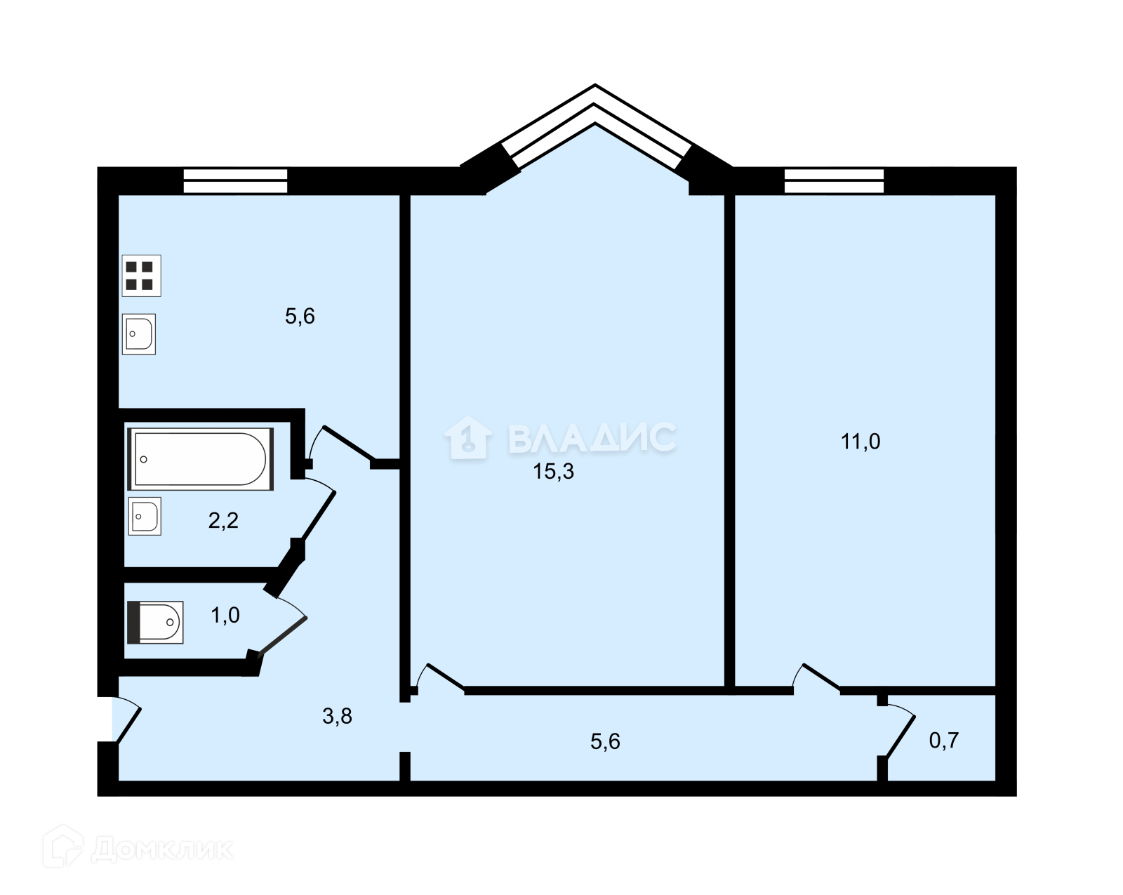 Общая площадь 43.8 м2