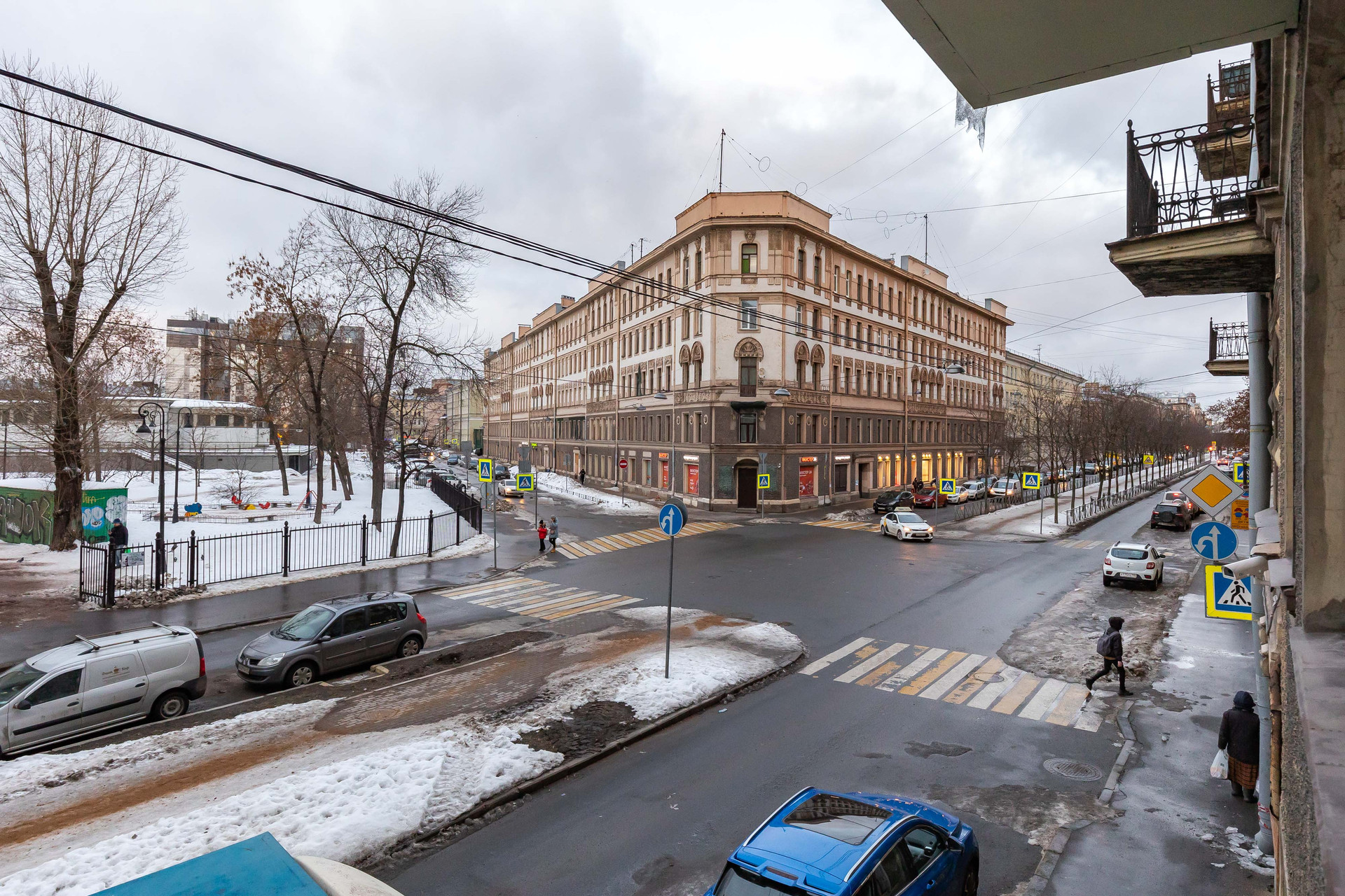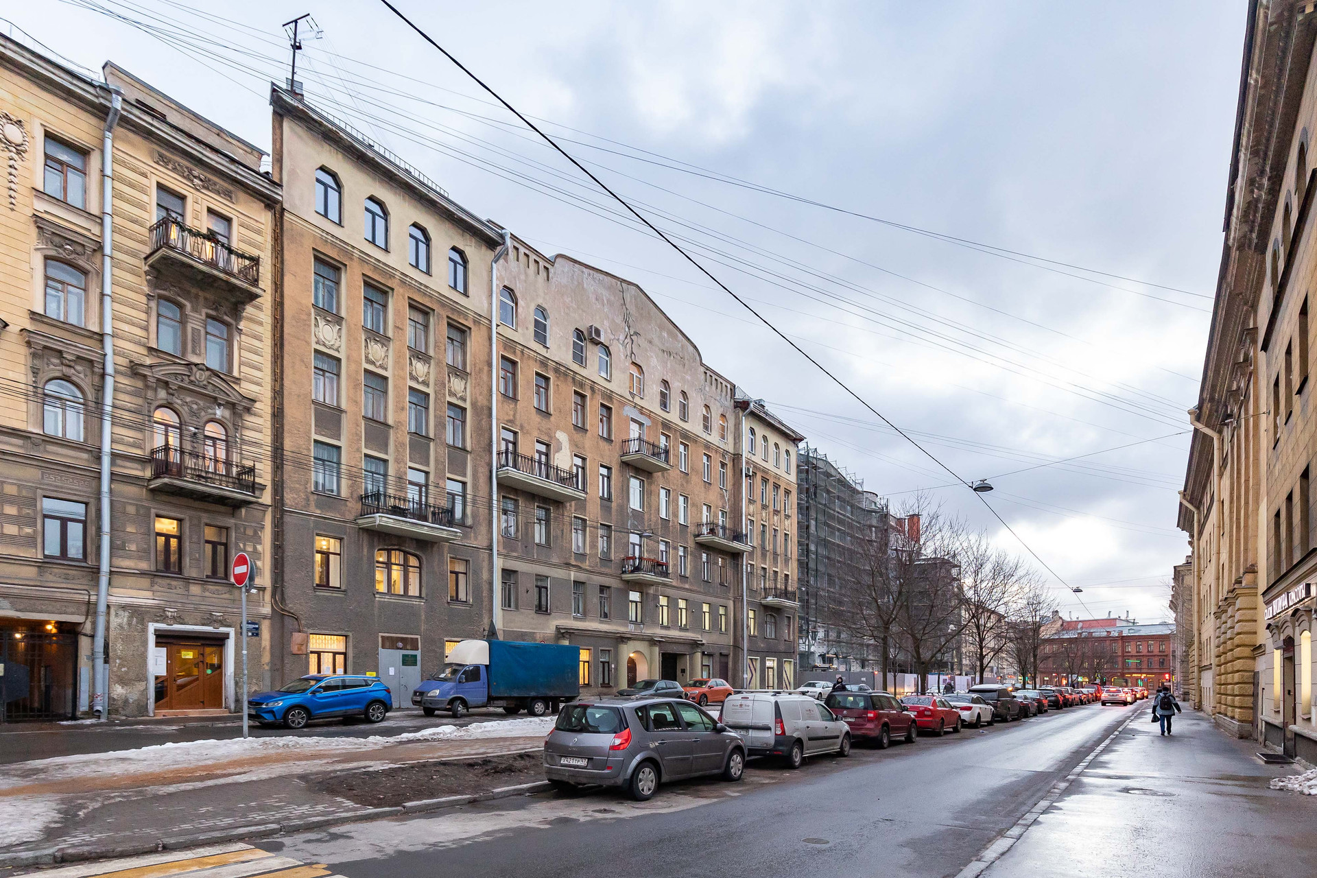 Вход в парадную со стороны двора. Если нужно поставить машину, то в теории есть возможность парковаться бесплатно во дворе, но на практике проще и безопаснее найти место на улице.