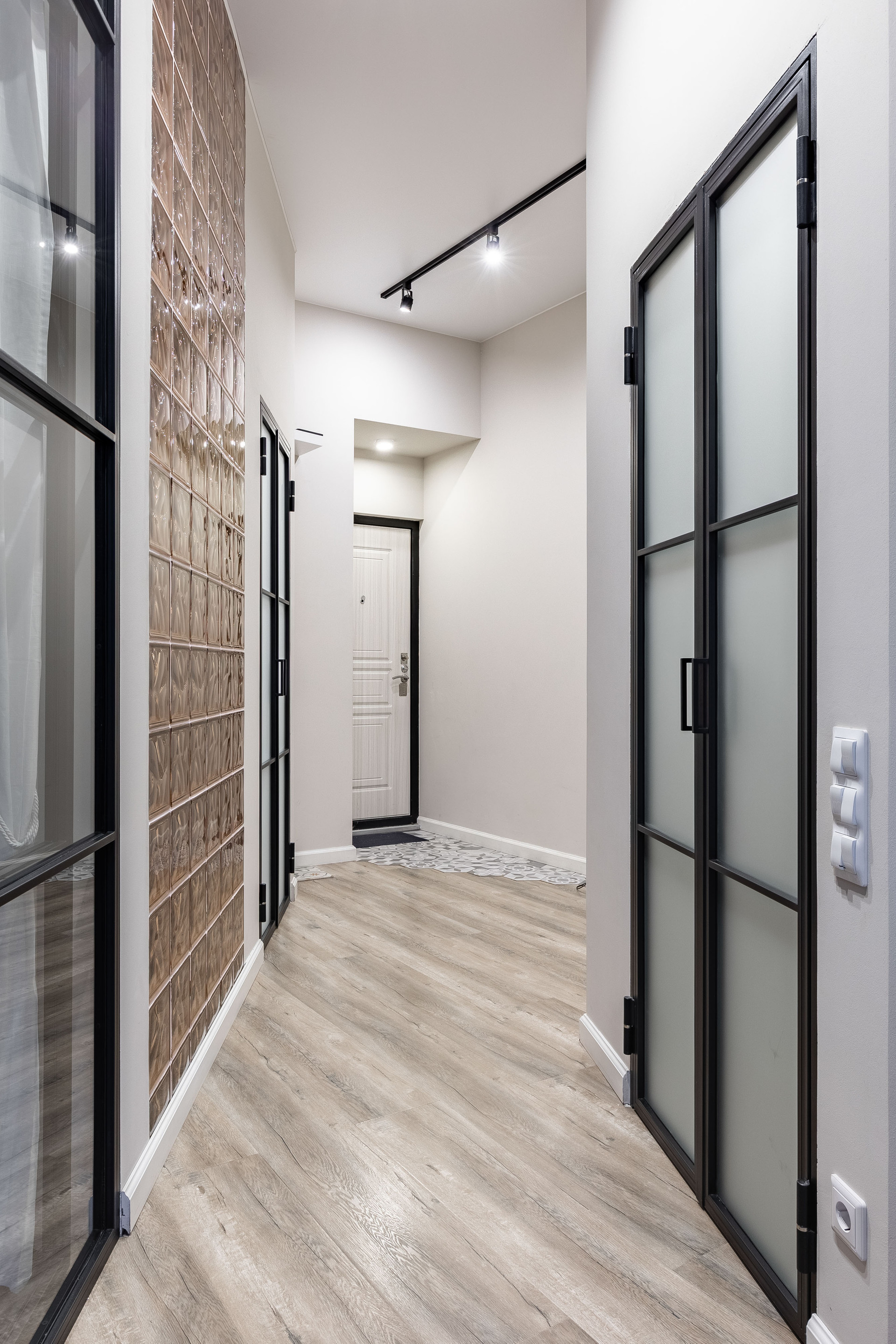 -отгорожена вместительная гардеробная с системой хранения