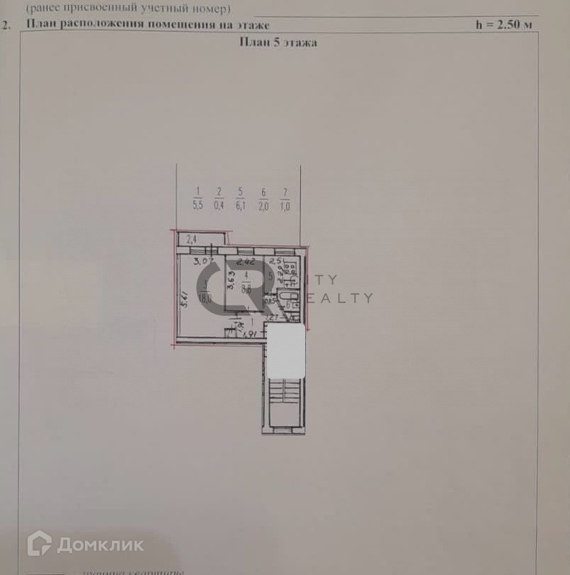 Высота потолков 2.55 м