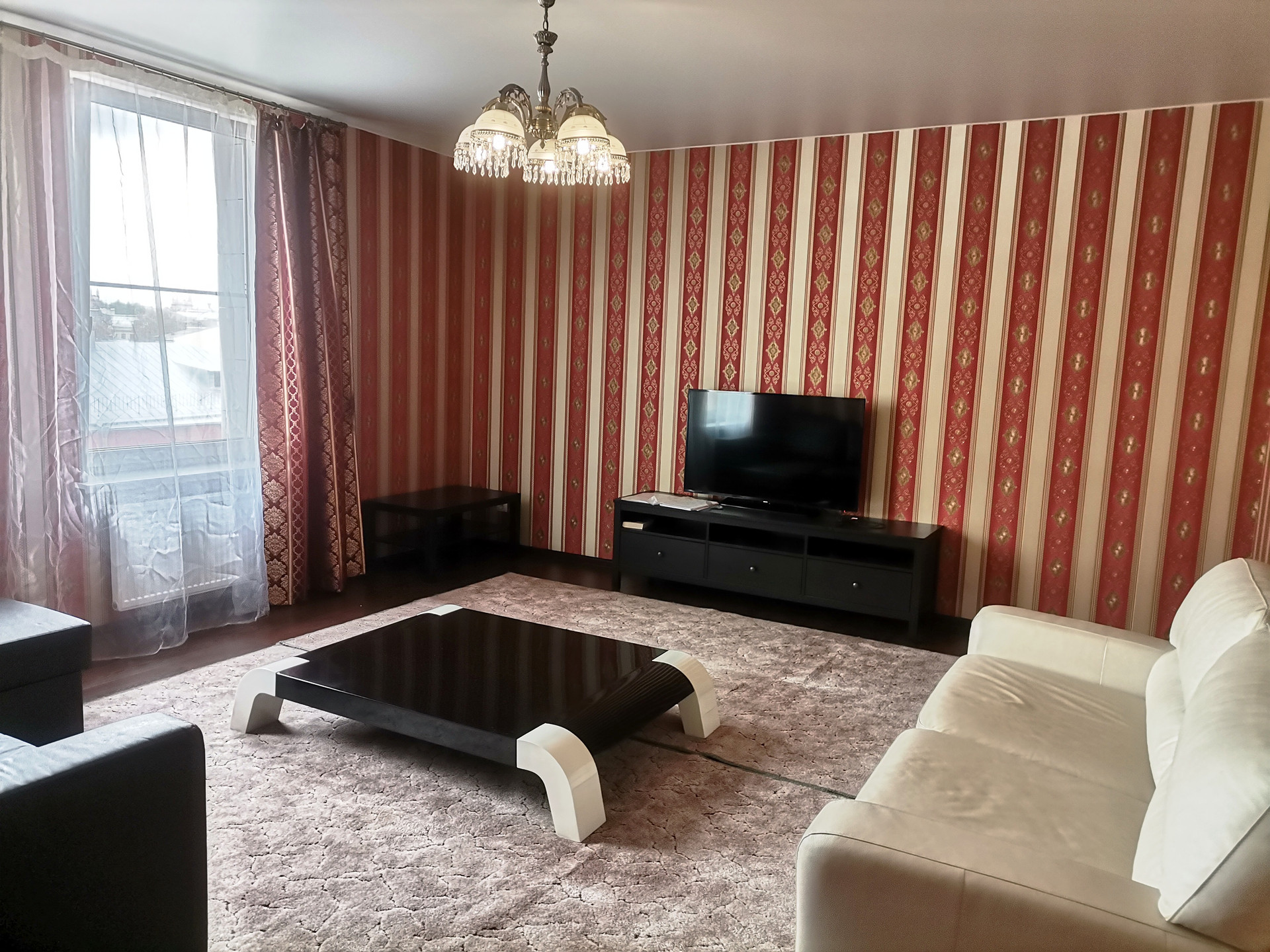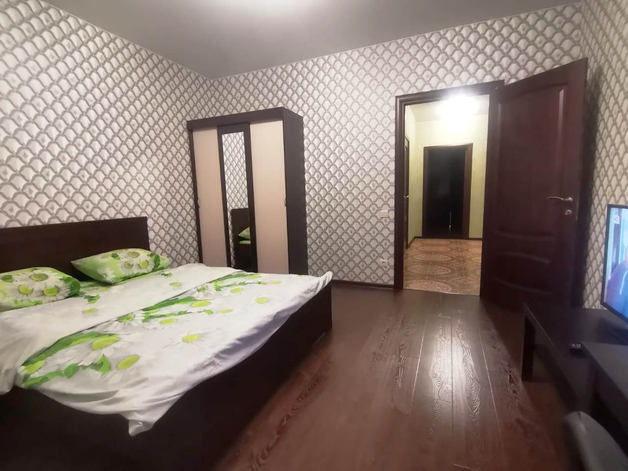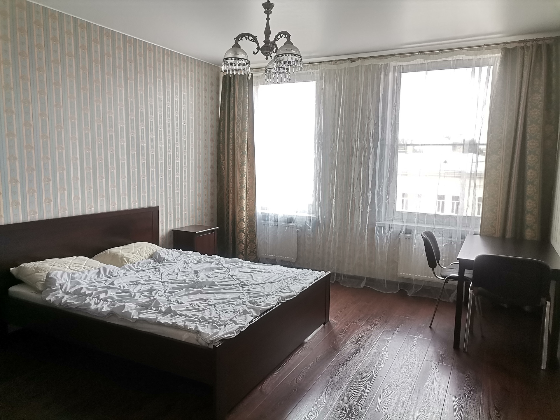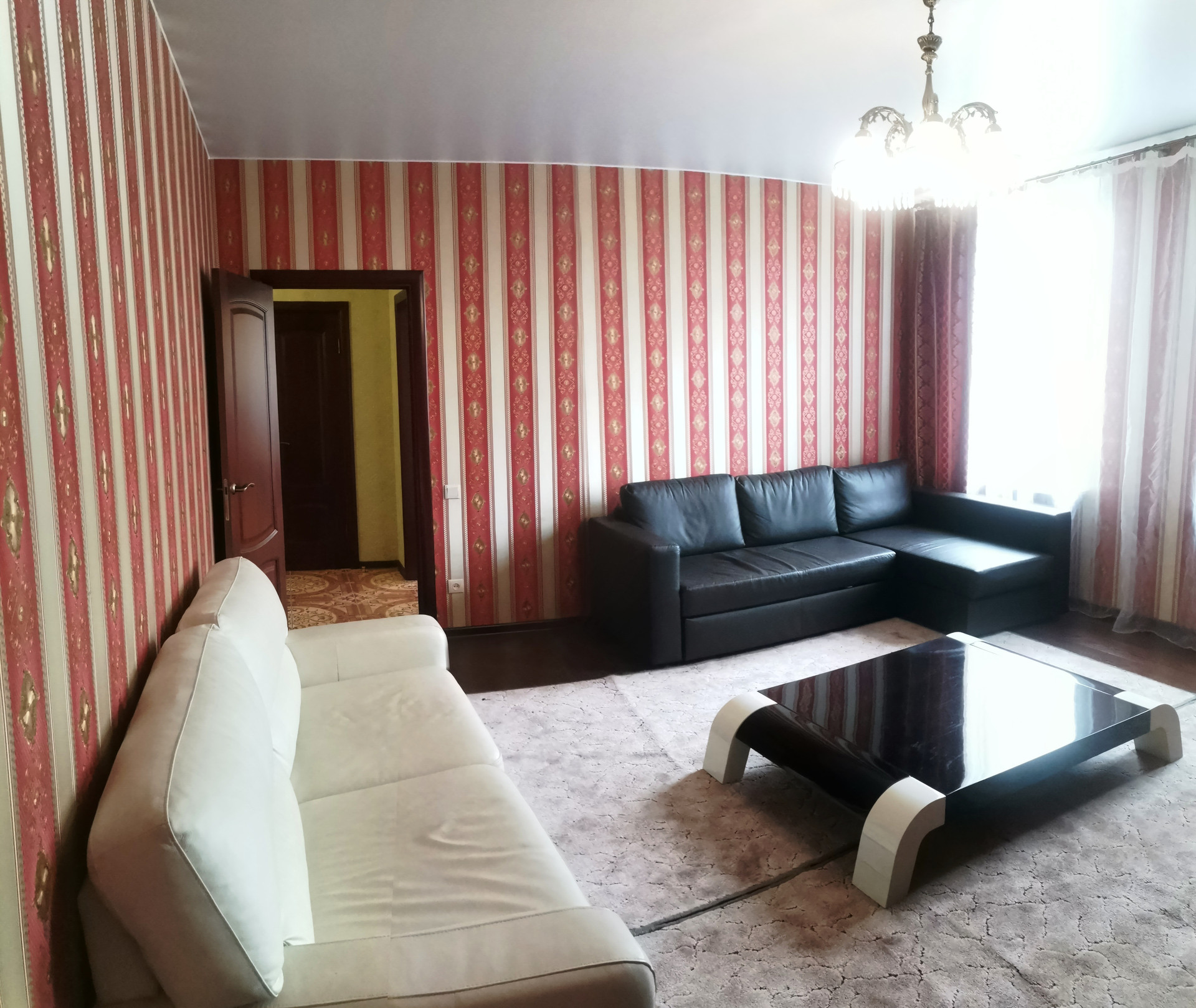С евроремонтом, с современной мебелью, бытовой техникой, большими окнами, много света, пространства, идеальное место для проживания с семьёй. Кухонный гарнитур встроенный со всей бытовой техникой. В комнатах кожаный диван , 2 двуспальные кровати, два больших телевизора, встроенные шкафы купе.