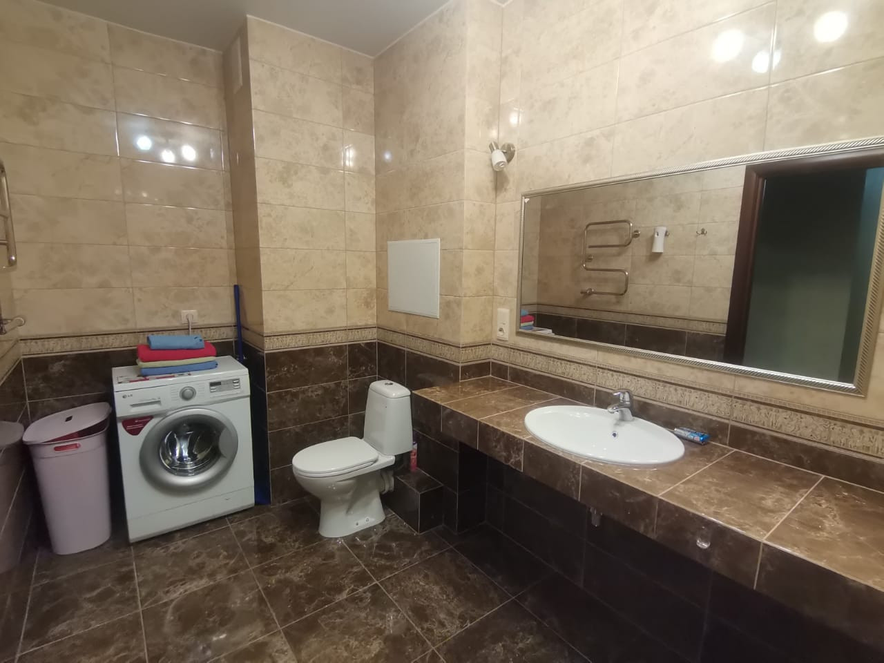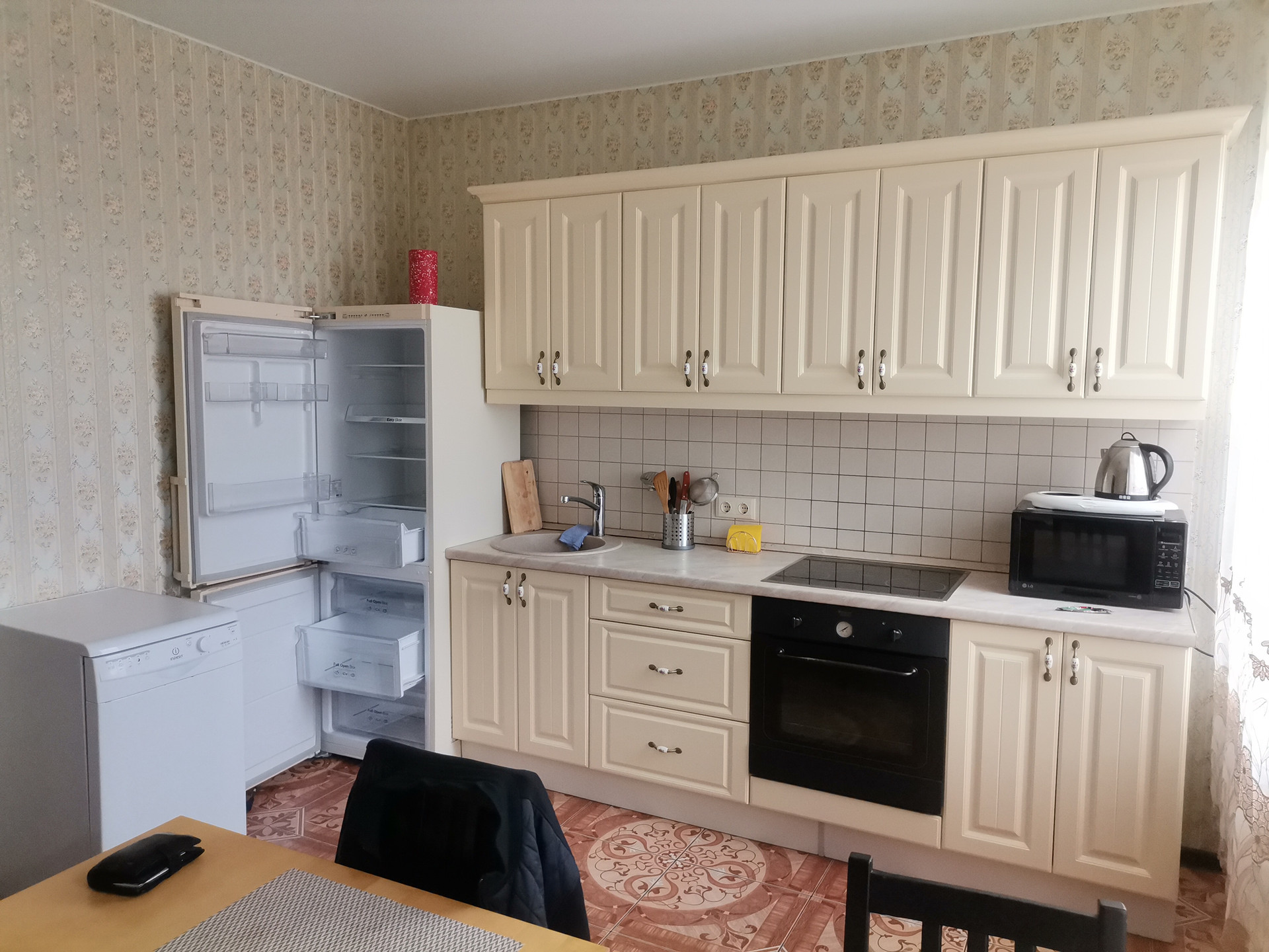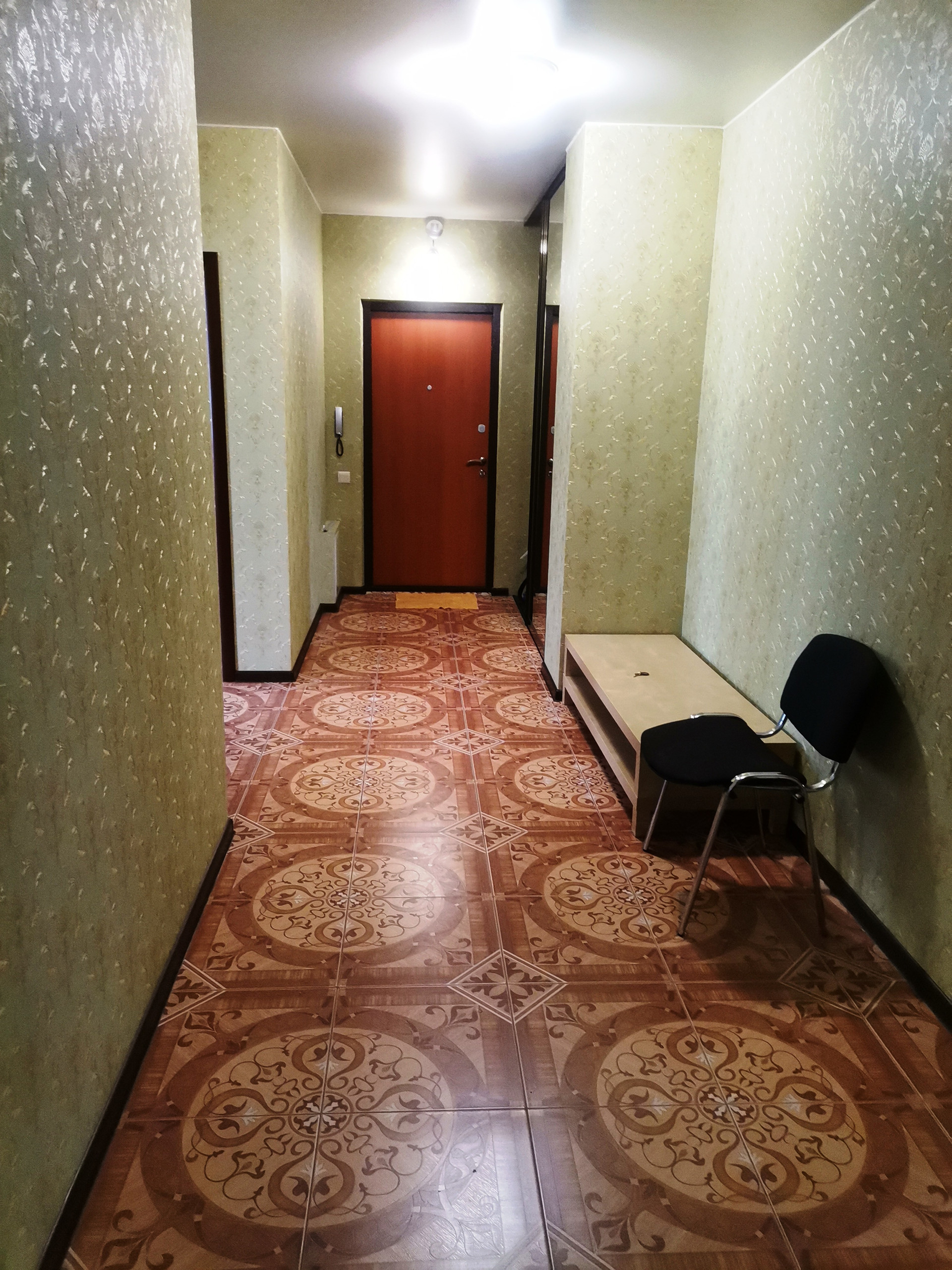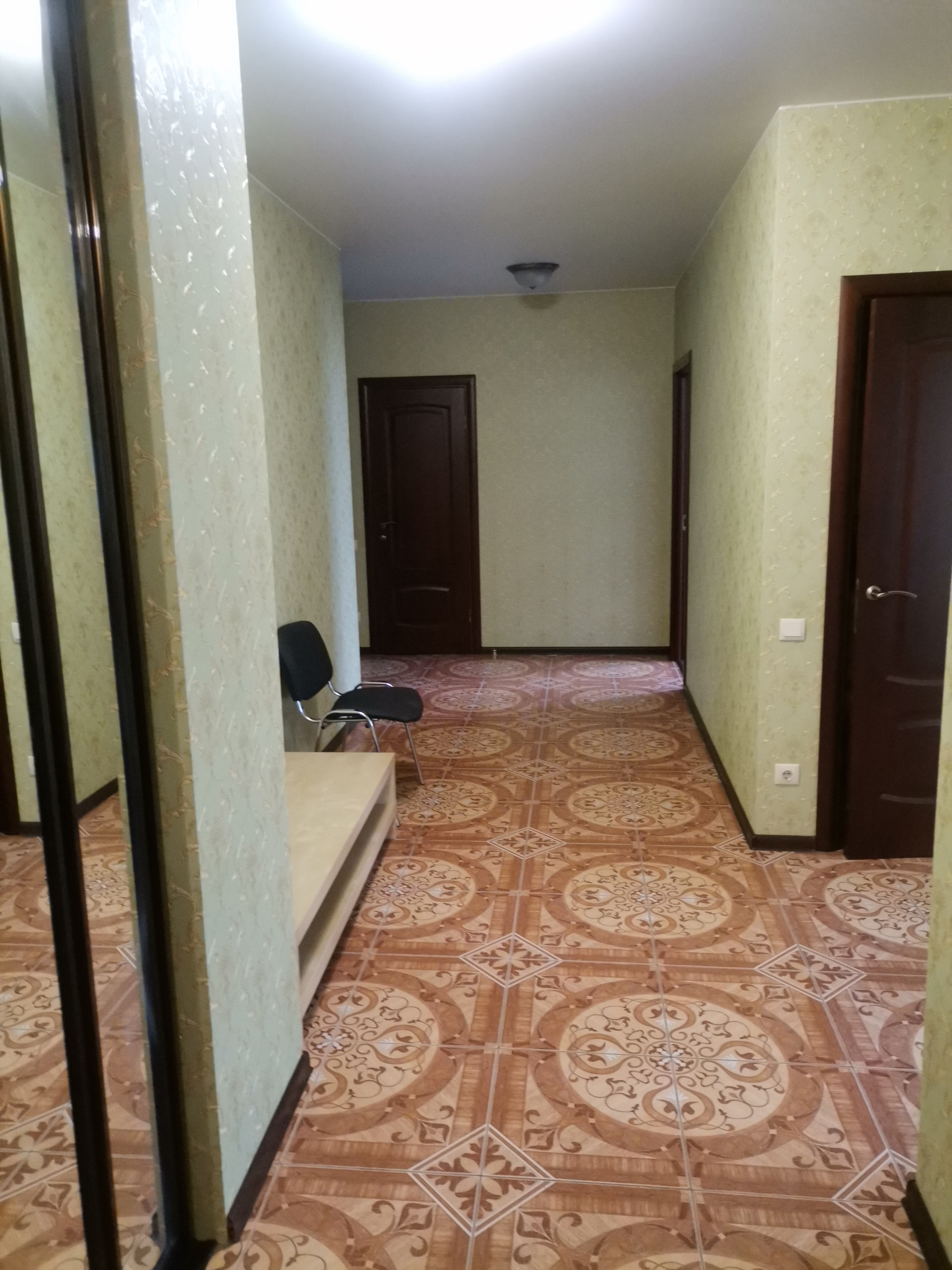 С евроремонтом, с современной мебелью, бытовой техникой, большими окнами, много света, пространства, идеальное место для проживания с семьёй. Кухонный гарнитур встроенный со всей бытовой техникой. В комнатах кожаный диван , 2 двуспальные кровати, два больших телевизора, встроенные шкафы купе.