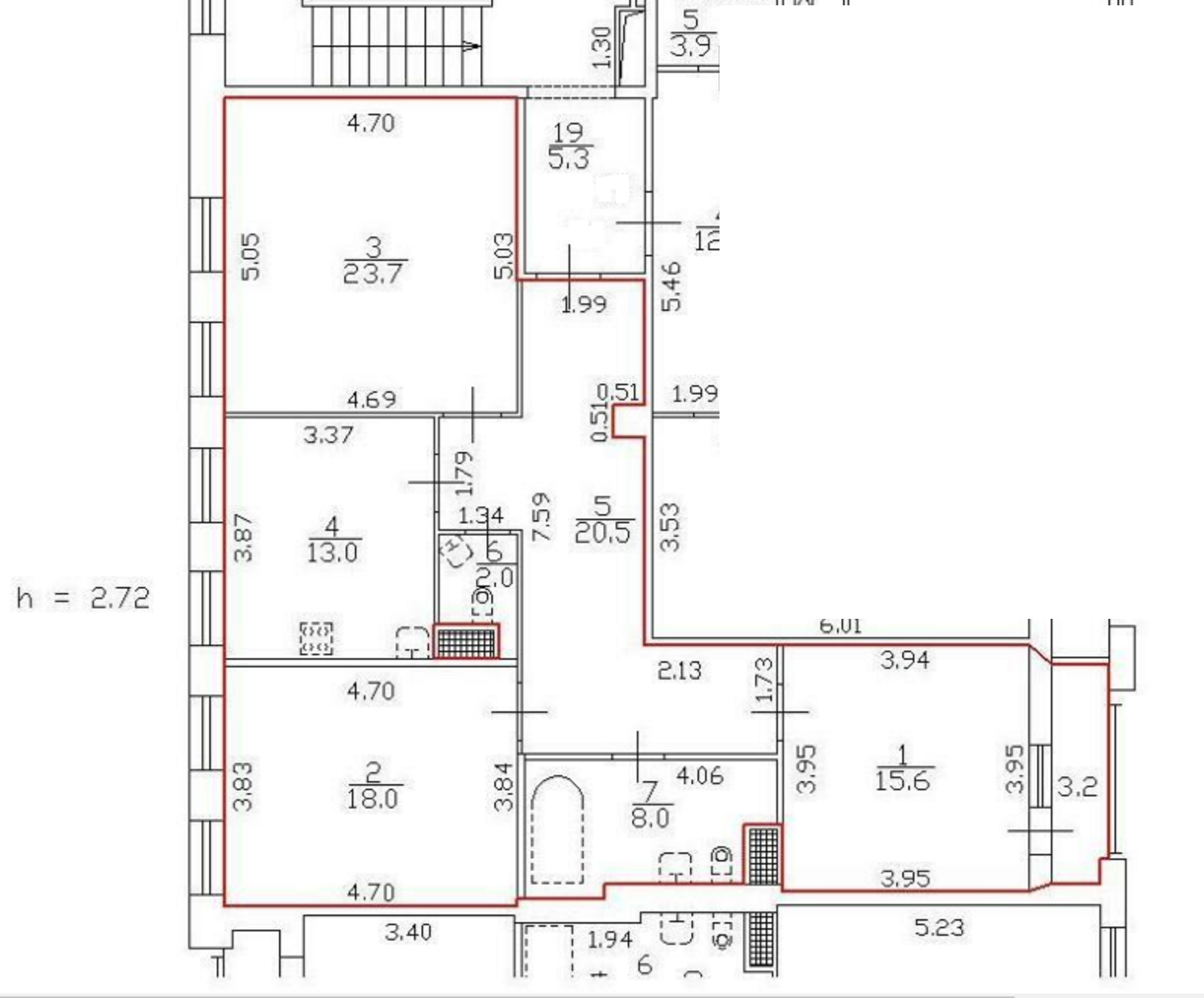 Общая площадь квартиры: 100.8 м2., кухня 13 м, комнаты 23,7+18+15,6 м. В квартире сделан качественный ремонт. Большой коридор. Все комнаты изолированы. Есть возможность второго сан.узла сейчас используется как гардеробная.
