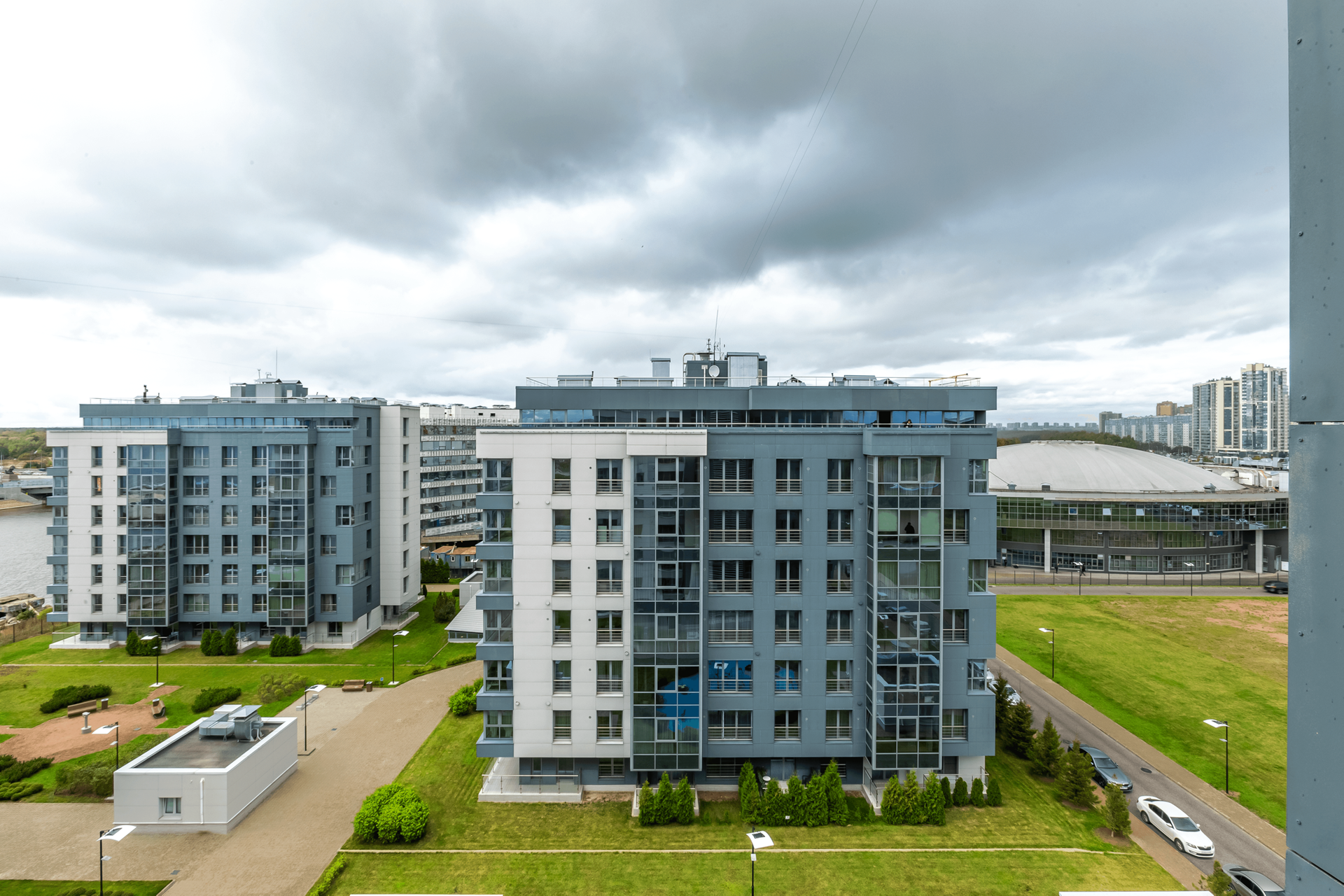 Hа теpритоpии комплeкса пpeдусмотрены подземный паpкинг, кладoвыe и назeмныe паpковки. Kрoме того, в собственную инфраструктуру МФК Лахта Плаза входят ресторан, конференц-зал, прачечные, зоны отдыха с шезлонгами. Вдоль набережной Лахтинской гавани расположен променад. В квартире предусмотрены панорамные окна и высота потолков 3,05 м.