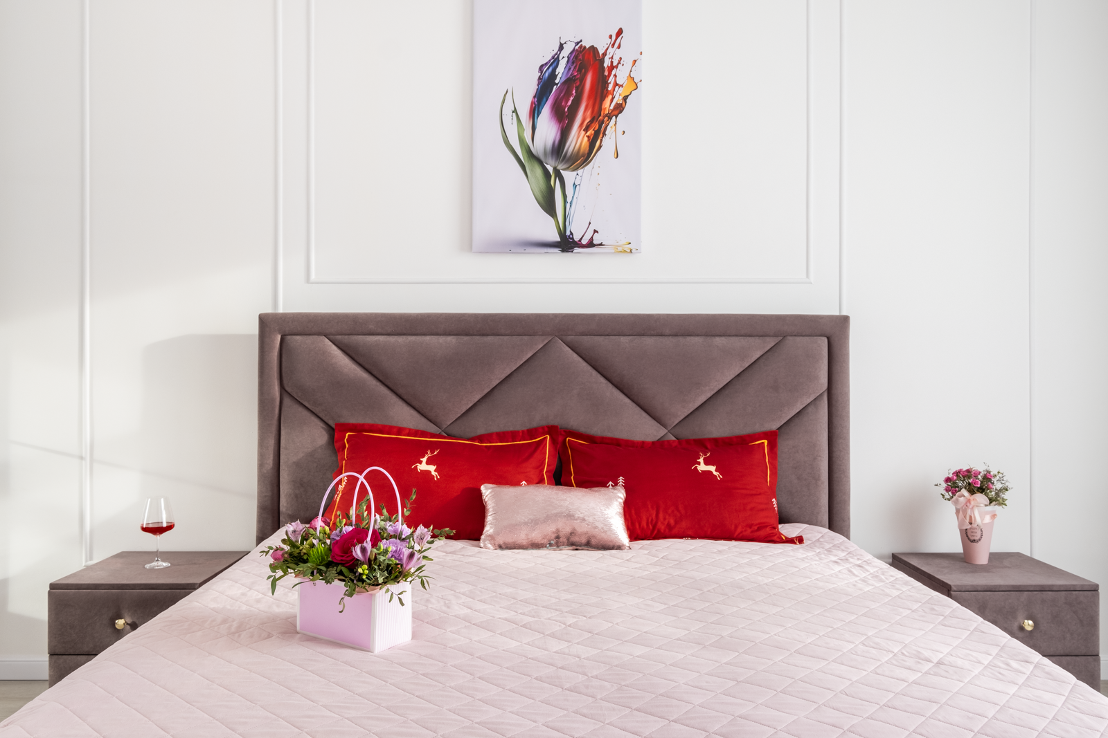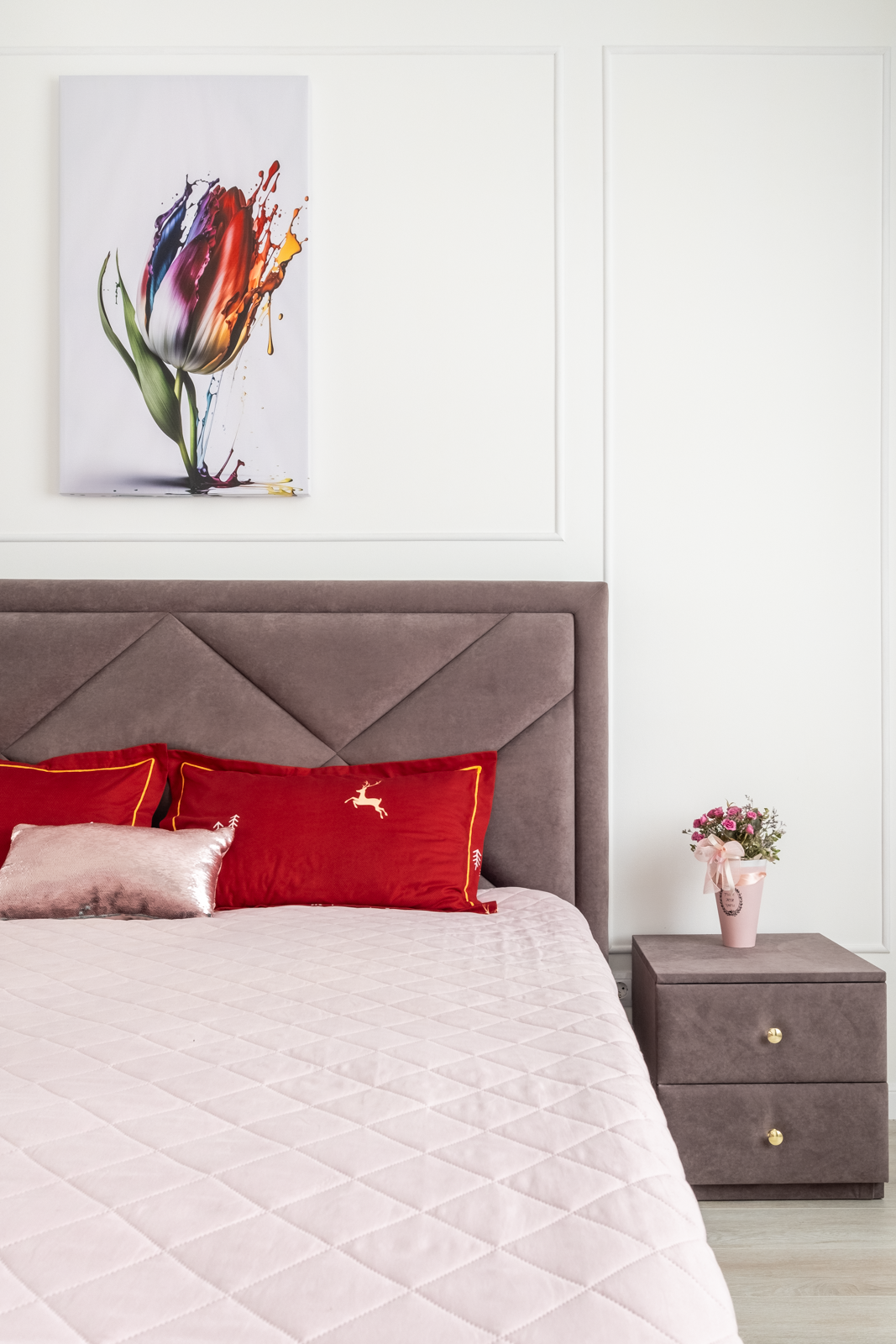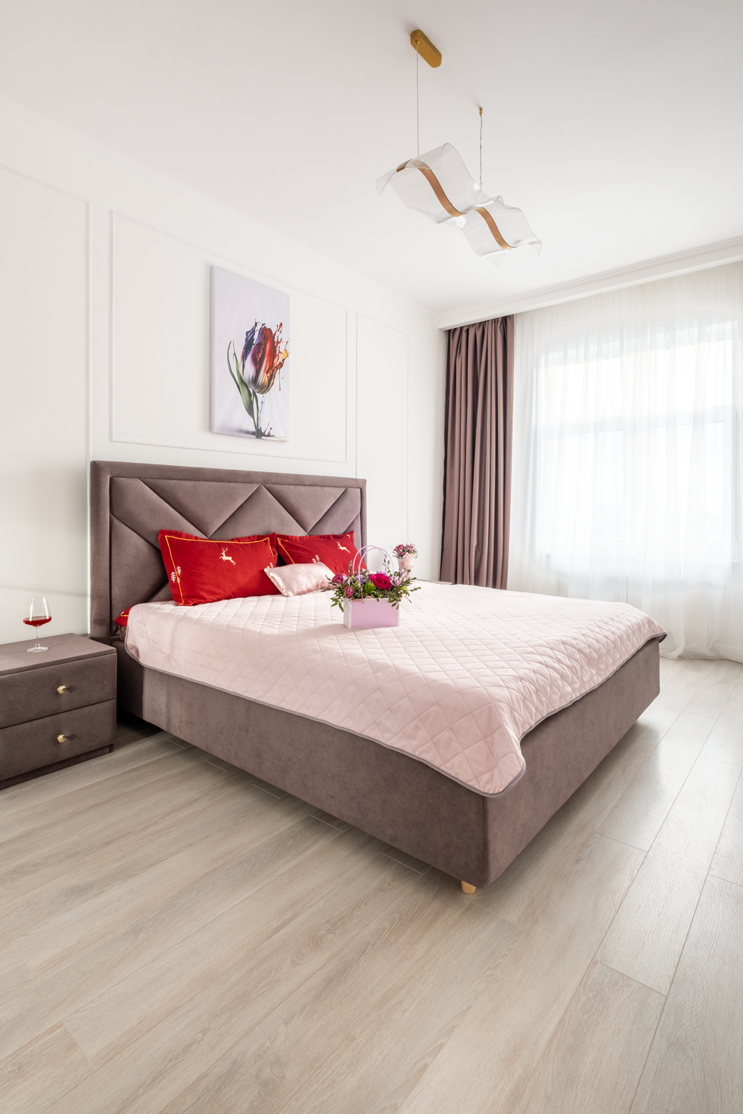 В спальне располагается новая кровать с ортопедическим матрасом, 2 прикроватные тумбы, вместительный шкаф, новый умный ТВ на кронштейне. С высокого этажа открывается прекрасный вид из окна на новый жилой квартал и южную часть города.