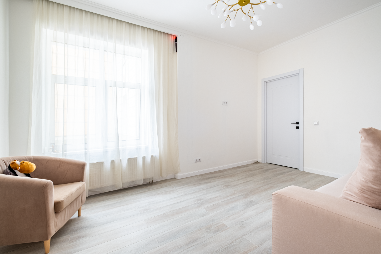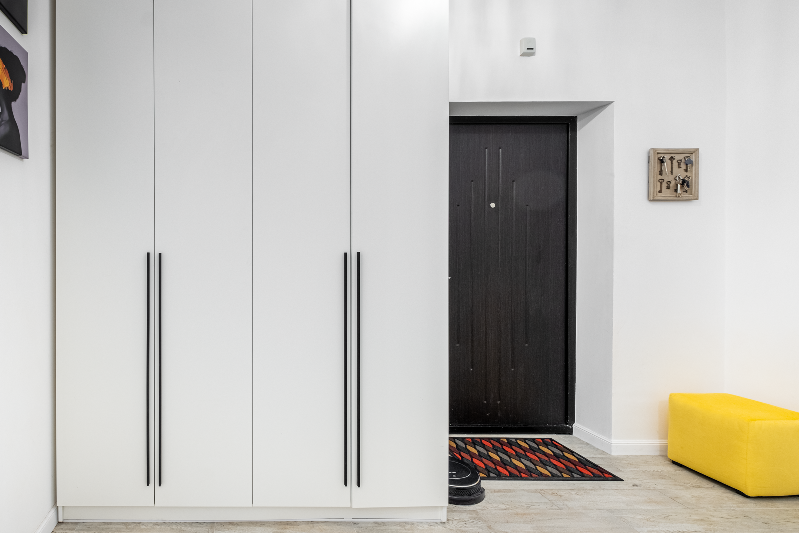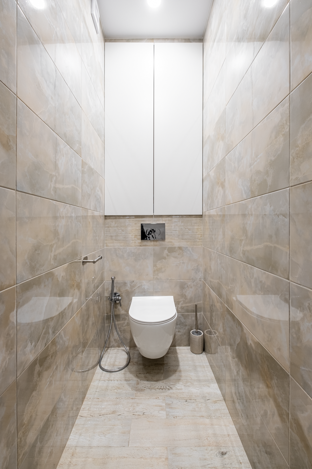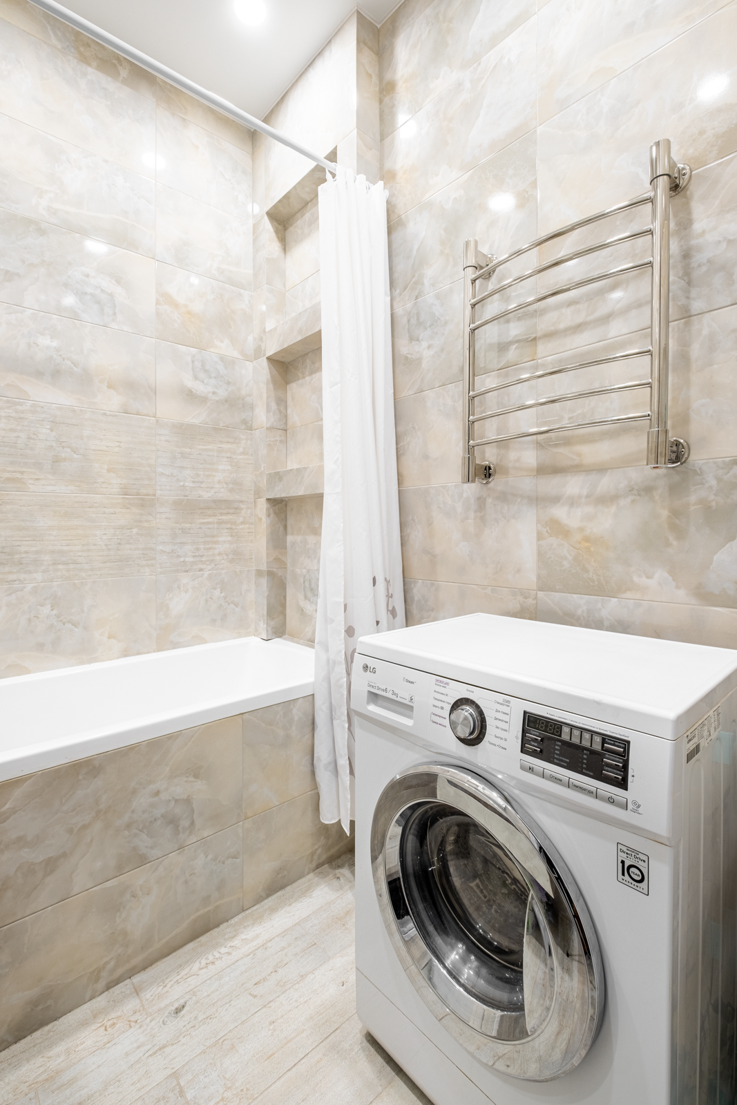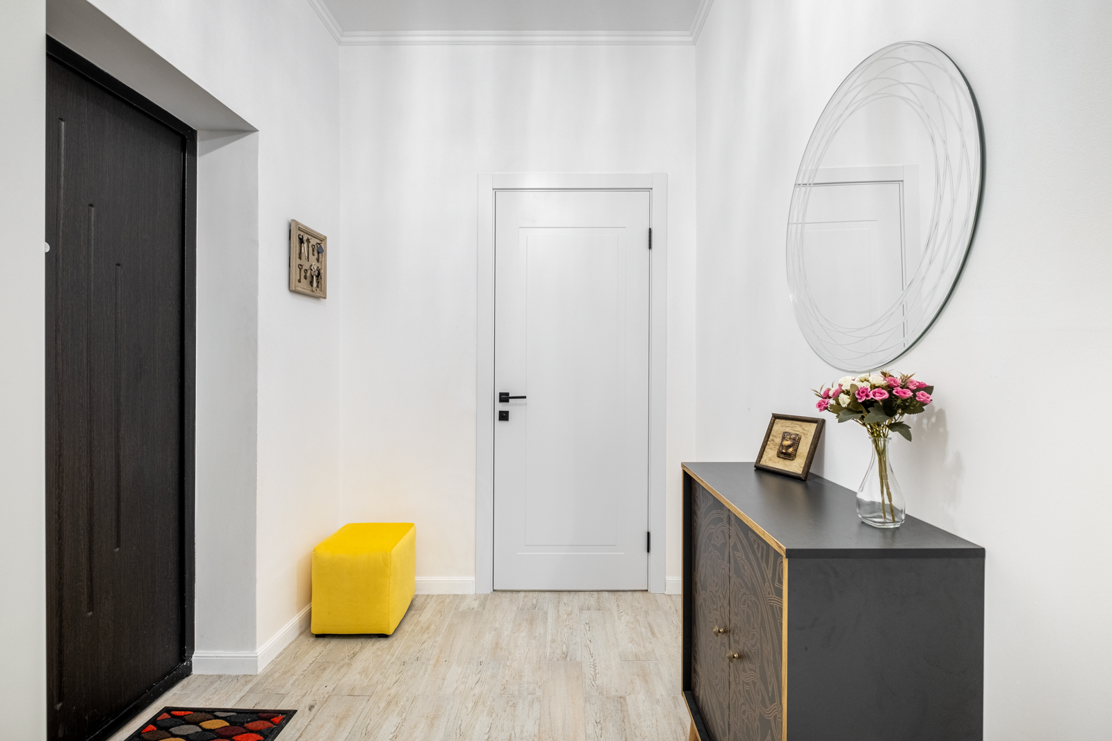 В коридоре удобная система хранения, на потолке 2 хрустальные позолоченные итальянские люстры. Во всей квартире детально продумано освещение, сделаны дополнительные светодиодные подсветки.