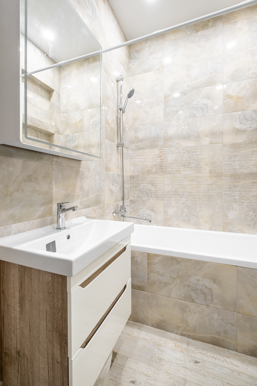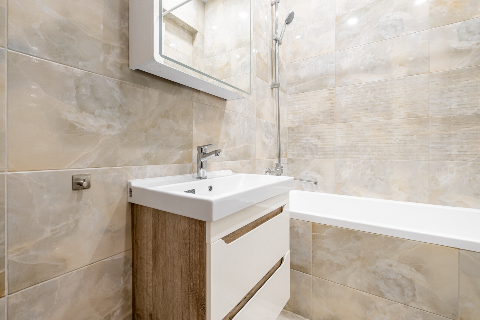 Во второй комнате раскладной диван и шкаф, места достаточно, чтобы расположить дополнительные предметы интерьера. Ванная и санузел раздельны. Исполнены в итальянской качественной плитке, установлена немецкая сантехника.