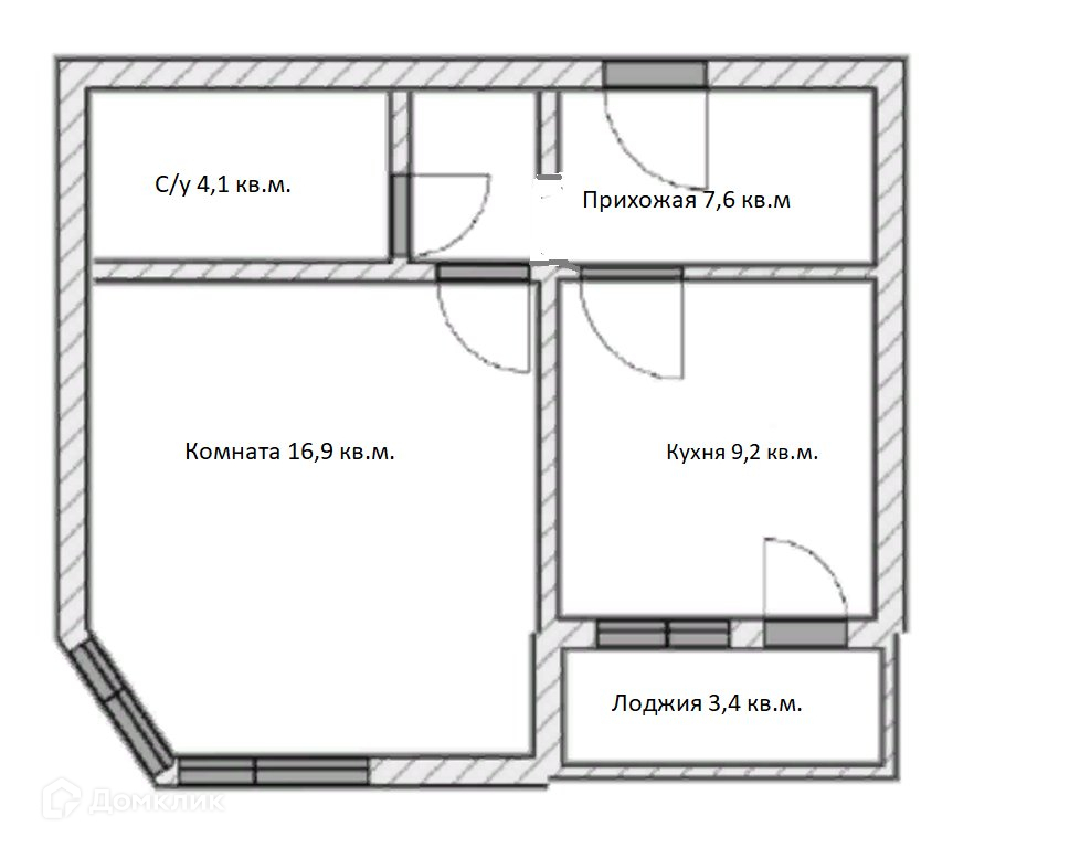 Лоджия - 3,4 кв.м.