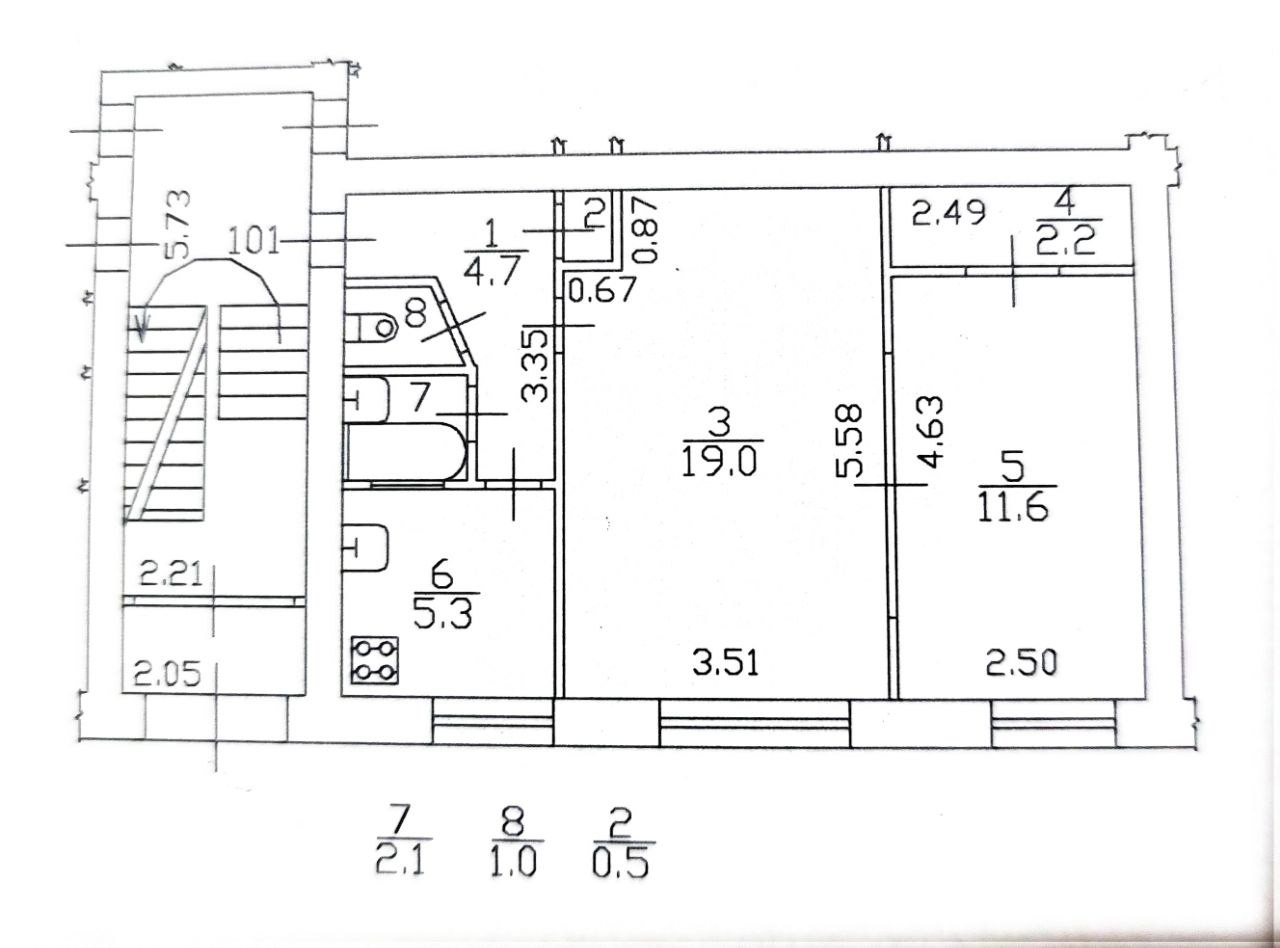 Площадь кухни 5.3 м2