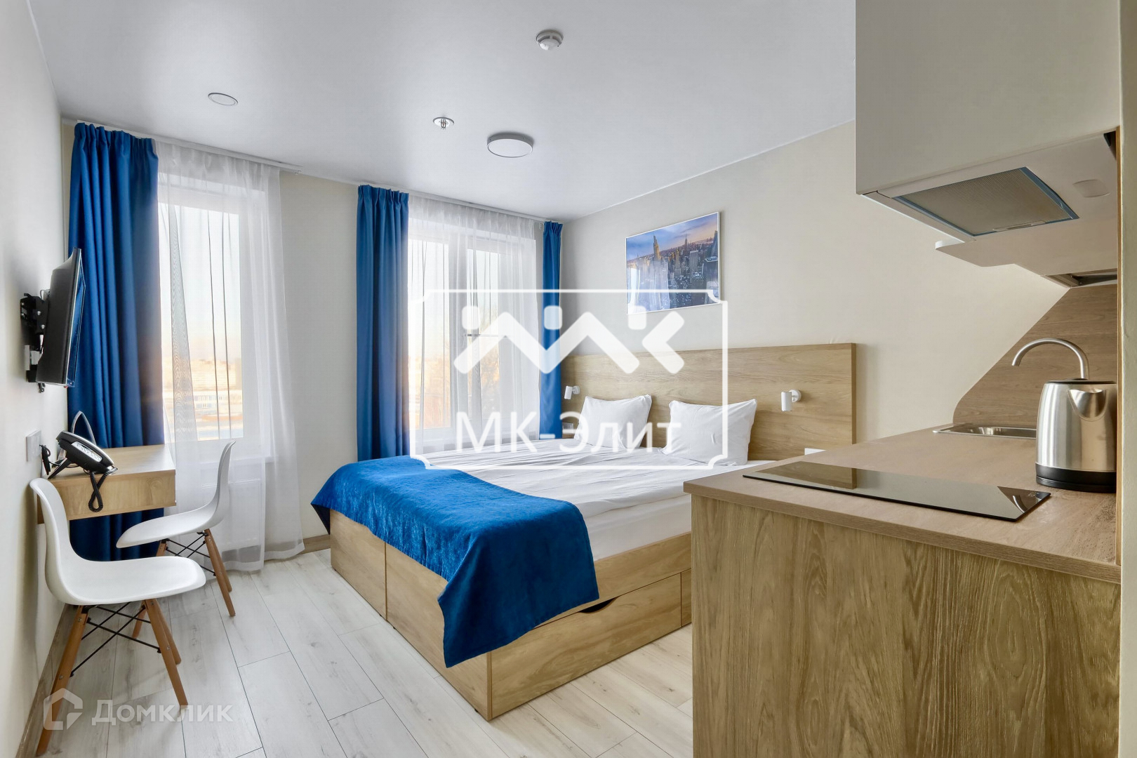 Апартаменты  площадью 18,4 м2 оснащены всей необходимой для комфортного проживания мебелью и техникой, на территории отеля есть бар, тренажерный зал, прачечная, кроме того есть возможность воспользоваться услугами камеры хранения, трансфера и парковки.