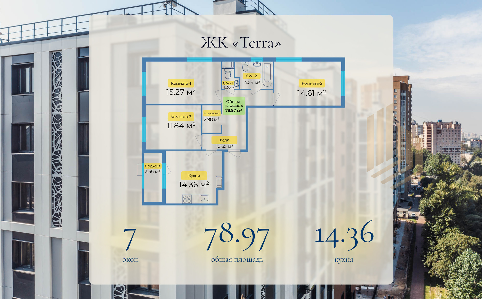 Общая площадь 78.97 м2