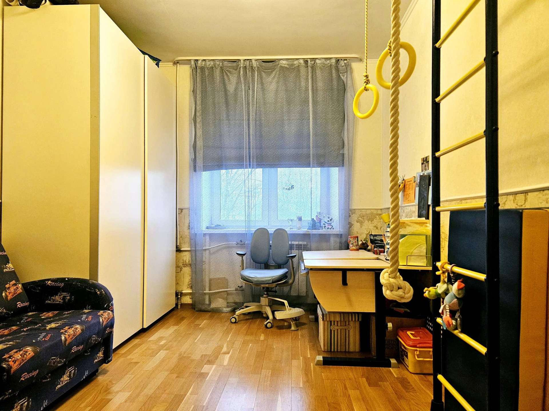В спальне есть балкон,выходит во двор.