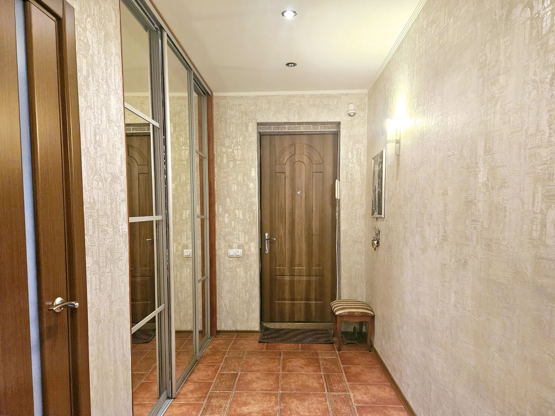 В прихожей оборудована просторная встроенная гардеробная.