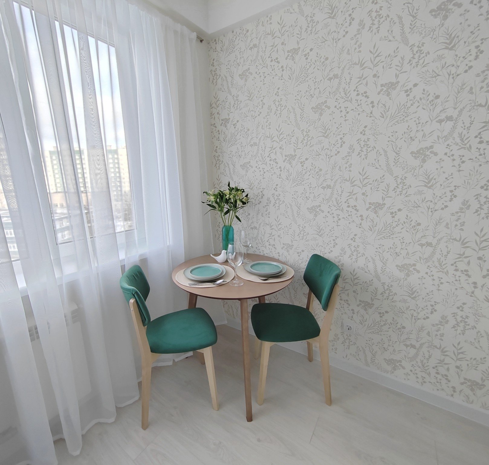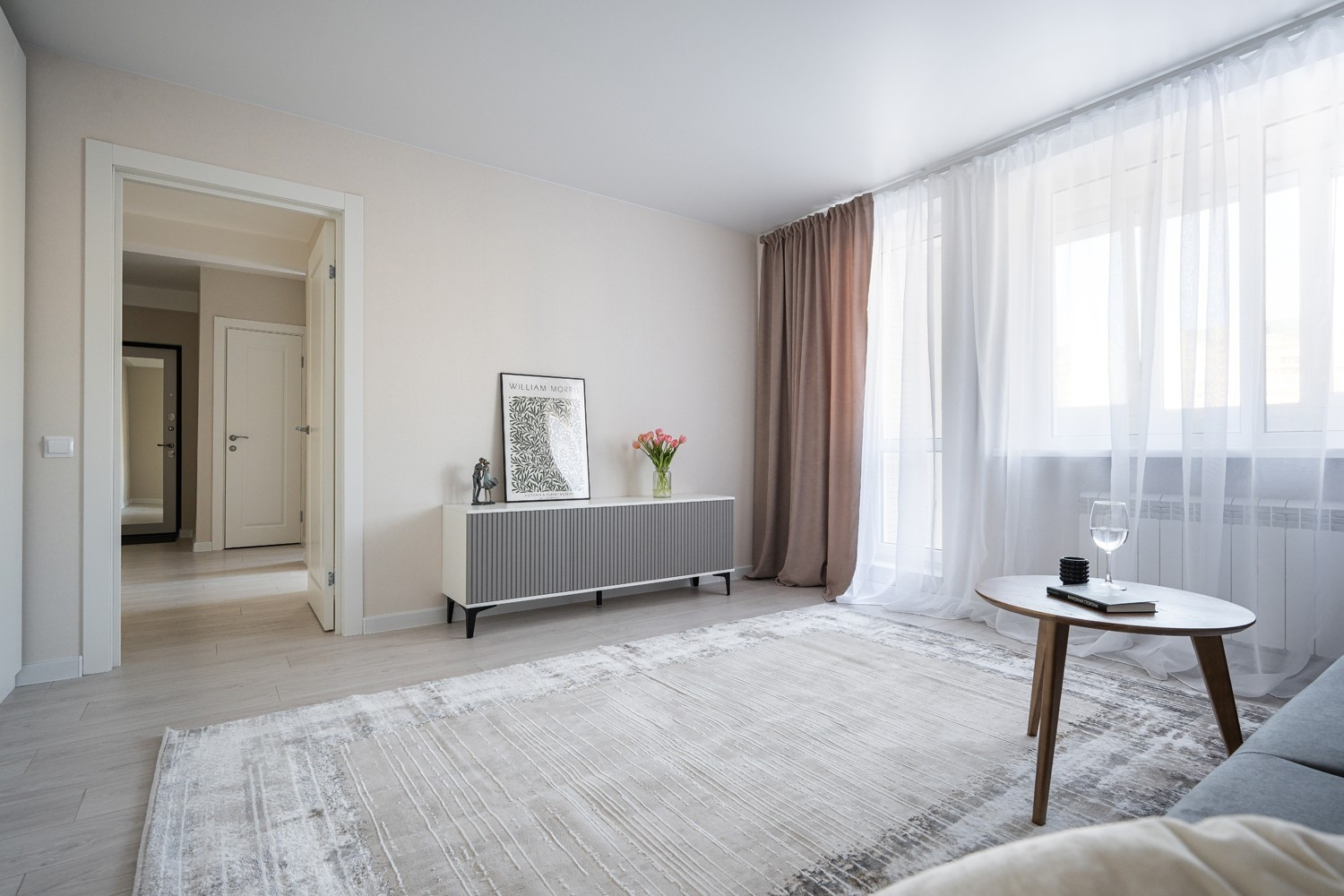 - Карниз со шторами.