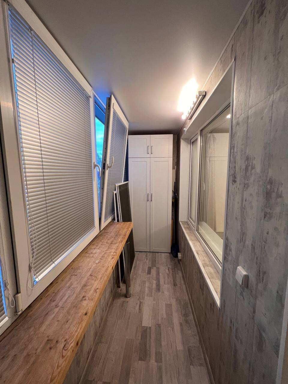 На лоджии сделан ремонт с утеплением, выводом света и электрической розетки.