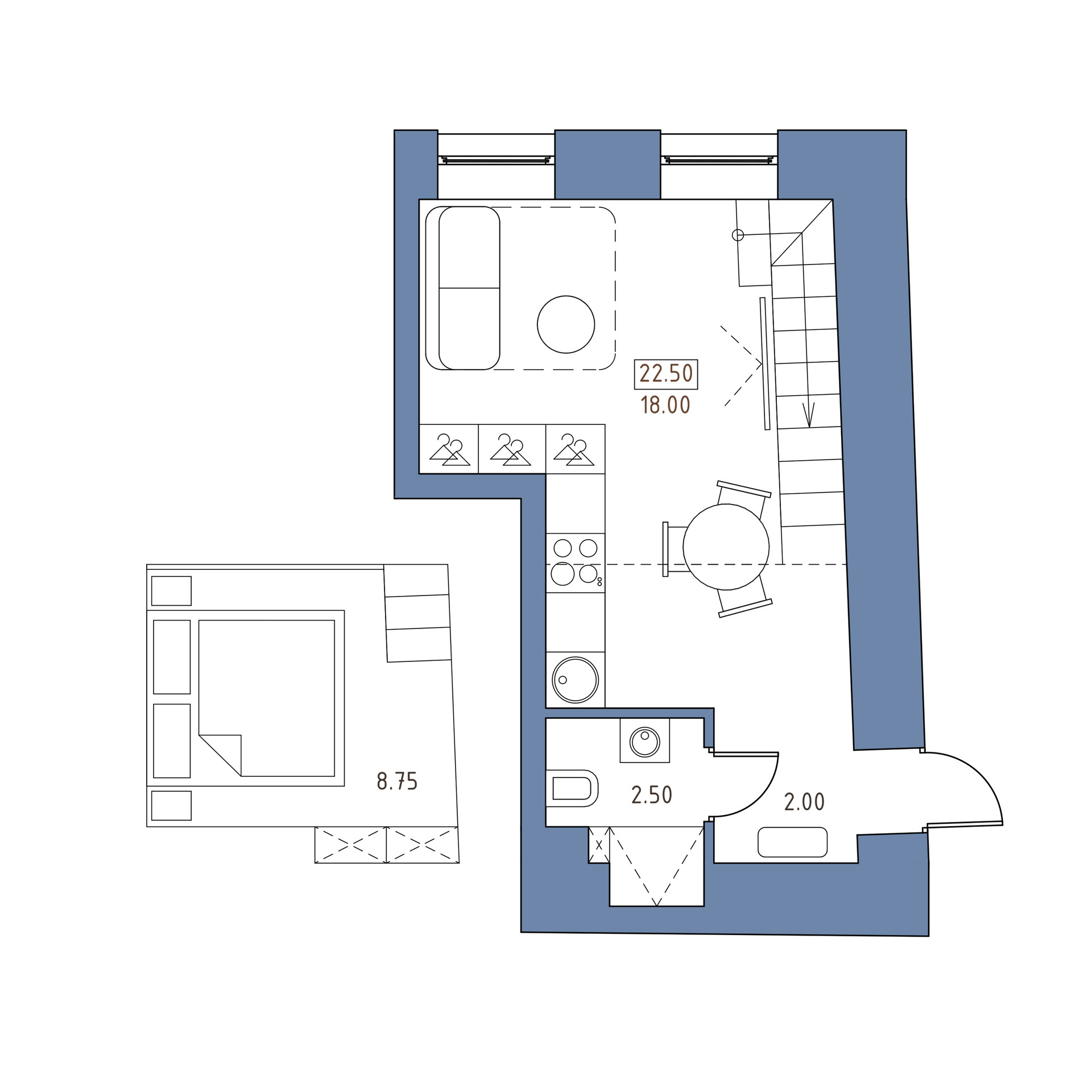 S площадь: 22,5 м2