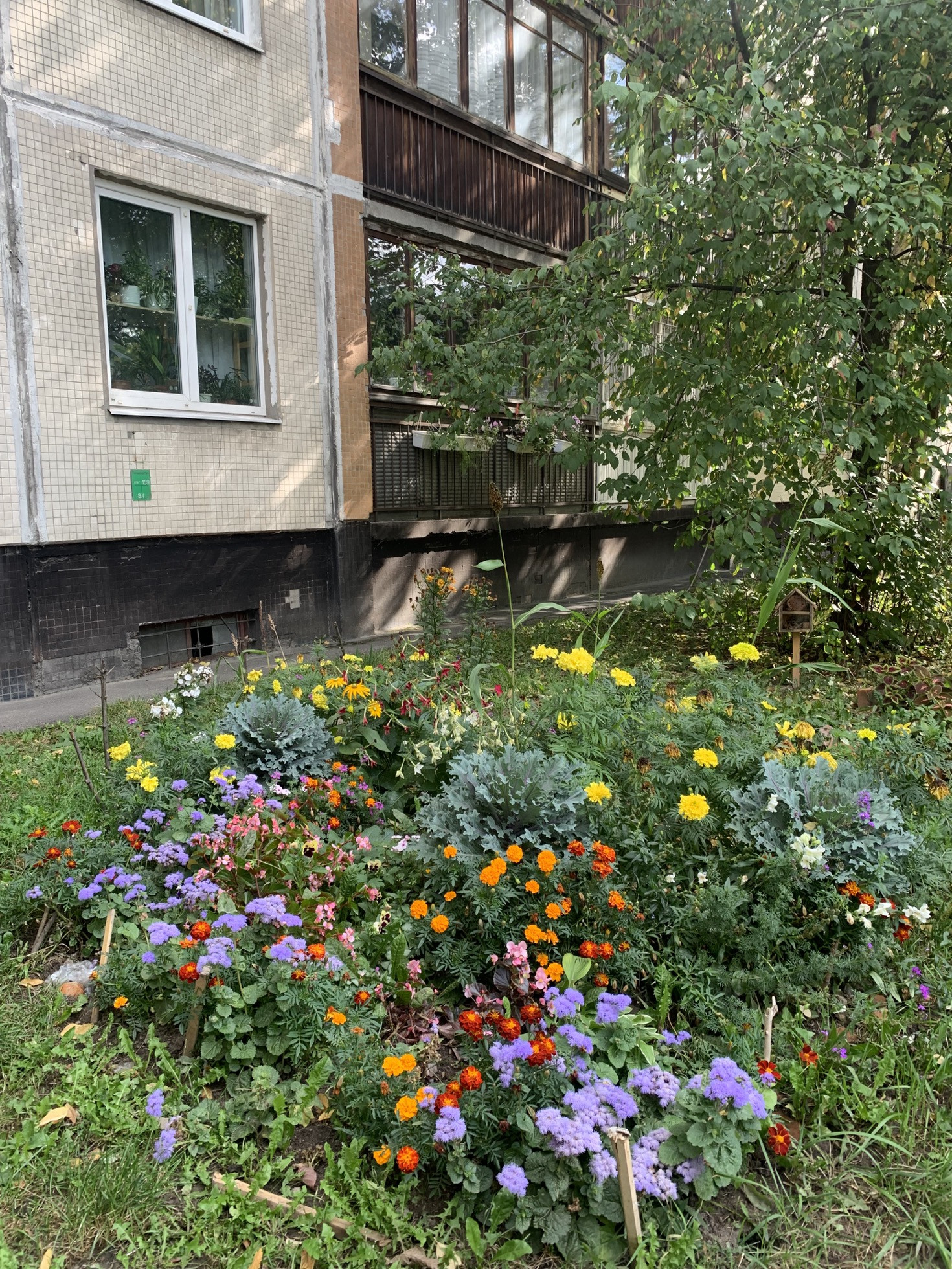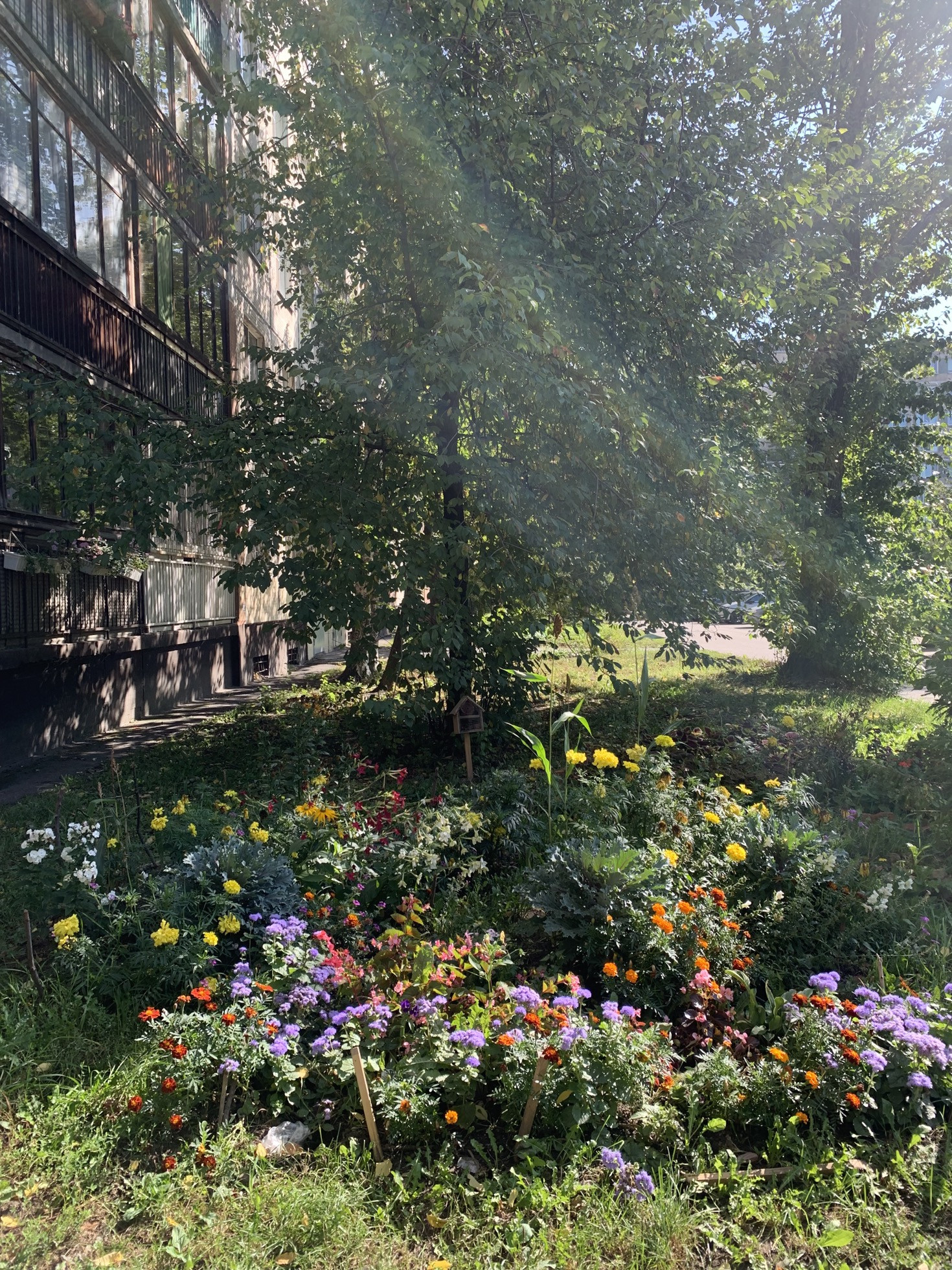 - Широкий благоустроенный зеленый двор, летом все газоны в цветах