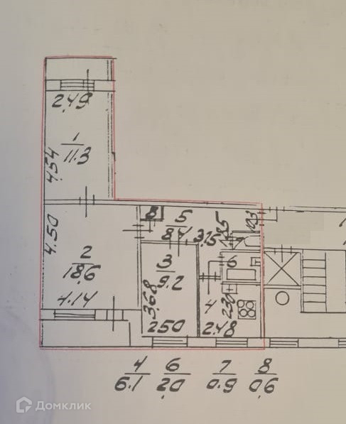 Жилая площадь 39.1 м2
