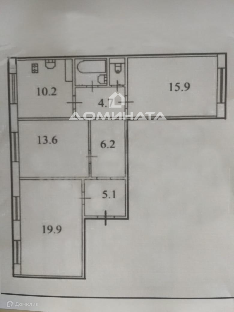 Жилая площадь 49.4 м2